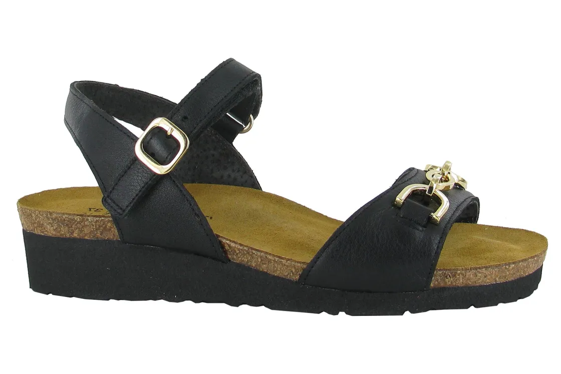 Naot Johanna is a stylish sandal with delicately crafted rhinestones on the toe strap. Naot’s removable, anatomic cork & latex footbed is wrapped in pampering suede and molds to the shape of the foot with wear. The Scandinavian Collection features a 1.25″ polyurethane sole which is extremely lightweight and durable.American Podiatric Medical Association (APMA) Accepted for promoting good foot health.