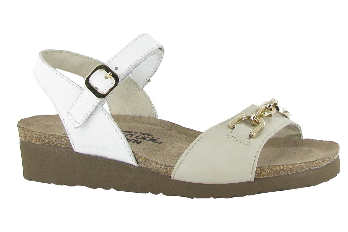 Naot Johanna is a stylish sandal with delicately crafted rhinestones on the toe strap. Naot’s removable, anatomic cork & latex footbed is wrapped in pampering suede and molds to the shape of the foot with wear. The Scandinavian Collection features a 1.25″ polyurethane sole which is extremely lightweight and durable.American Podiatric Medical Association (APMA) Accepted for promoting good foot health.