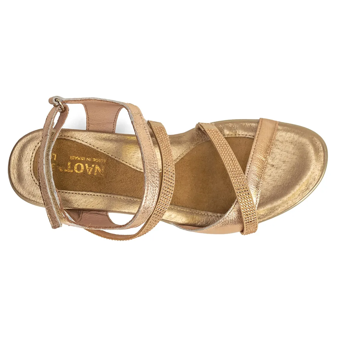 The Naot Innovate is the perfect backstrap heel for all of your festive events! This sandal has a hook & loop backstrap & gore at the middle straps creating a custom fit. The Innovate has a padded front strap for ultimate comfort. The feminine rhinestone accents make this shoe stand out from the crowd. Naot’s anatomic cork & latex footbed is wrapped in leather with a microfiber center to prevent slipping and molds to the shape of the foot with wear. The Avantgarde Collection features a TPR sole with a metal shank. This sole offers the look of a 2″ heel without the feel.