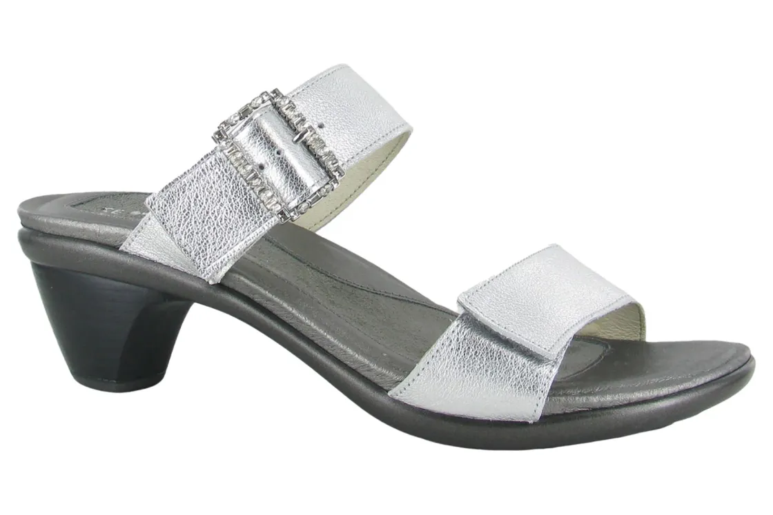 Recent is a stylish sandal that is sure to catch attention. This captivating style showcases a jewled buckle on a padded front strap and a hook and loop ankle strap for a secure and personalized fit. Part of the Avantgarde Collection, this sandal boasts a TPR sole with a metal shank, providing the illusion of a 2″ heel without sacrificing comfort.