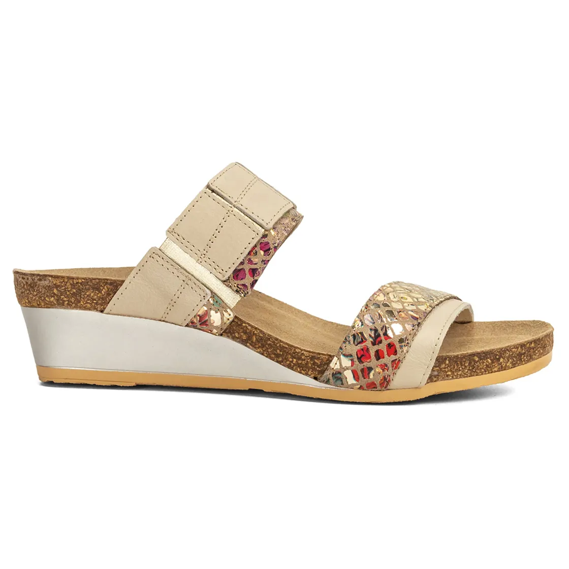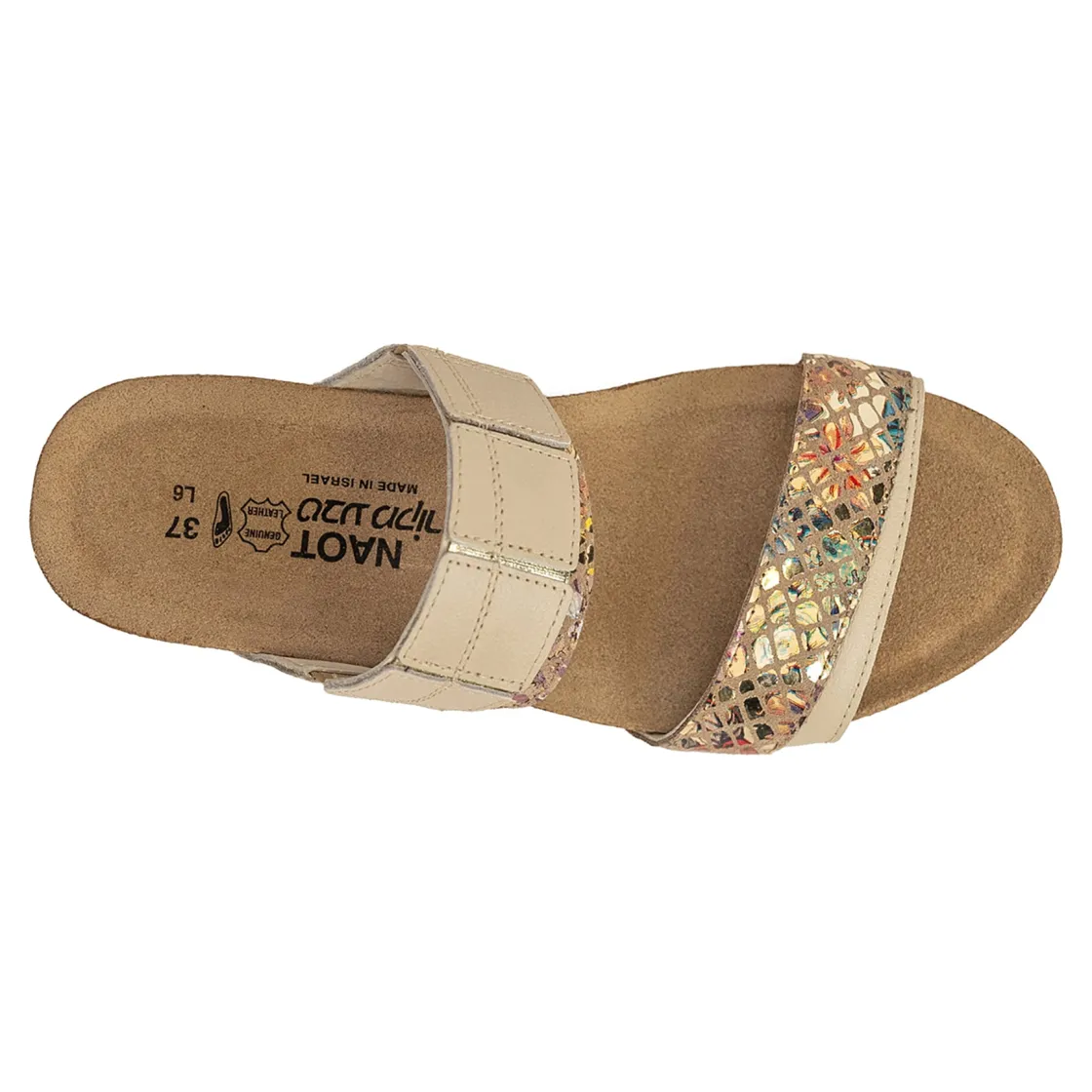 Naot Royalty is a dressy slide with a sleek design. An anatomic cork and latex footbed is wrapped in suede and molds to the shape of the foot with wear. A sturdy PU outsole and stretchable instep strap completes this fashionable silhouette.