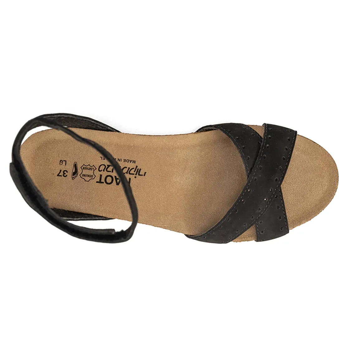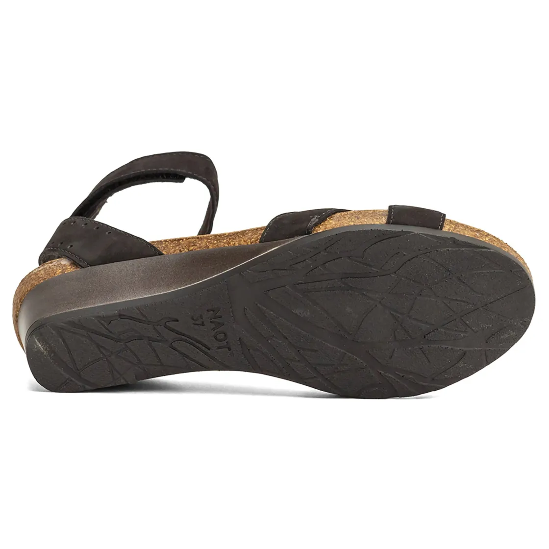 Warm weather style meets ultimate comfort in the women’s Naot Wand sandal. The strappy leather upper features circular cut outs and an adjustable hook and loop strap for a customized fit. The anatomic cork and latex footbed molds to the shape of your foot for a personalized fit, while the durable outsole provides traction and stability.