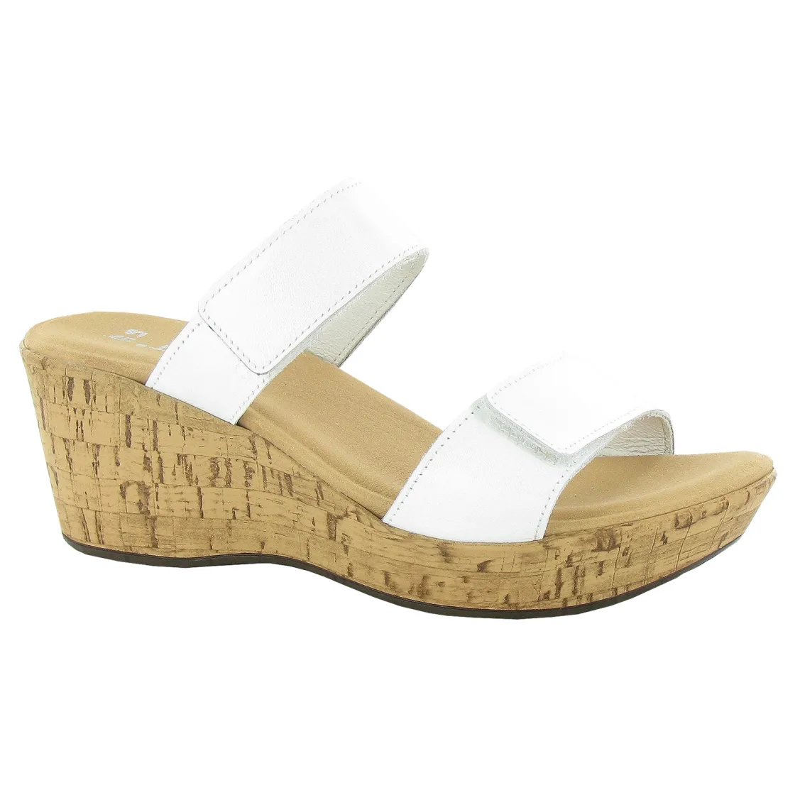 A fully adjustable wedge slide, the Caveran is lightweight and comfortable. It has two hook & loop straps that provide adjustability. Naot’s anatomic cork & latex footbed is wrapped in pampering suede and molds to the shape of the foot with wear. The Resort Collection features a TPR sole, it offers the look of a 2.75 inch wedge without the feel.
