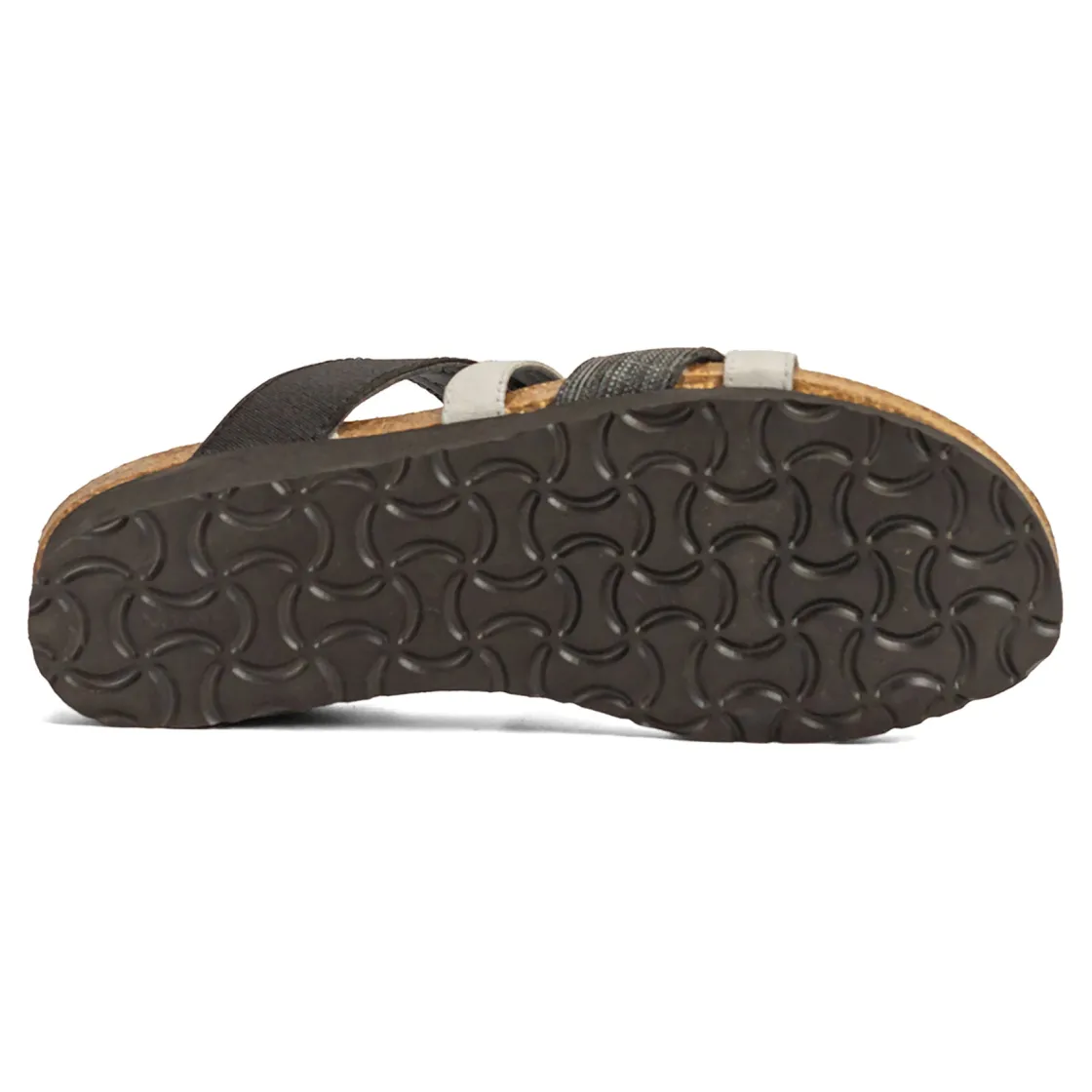 Add color to your footwear style with the women’s Naot Roxana sandal. The textile upper features elasticized straps for stretchable comfort. The suede-wrapped anatomic cork and latex footbed molds to the shape of your foot for an optimal fit, while the durable EVA outsole provides traction and stability.American Podiatric Medical Association (APMA) Accepted for promoting good foot health.