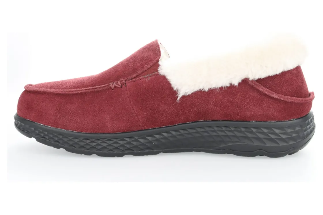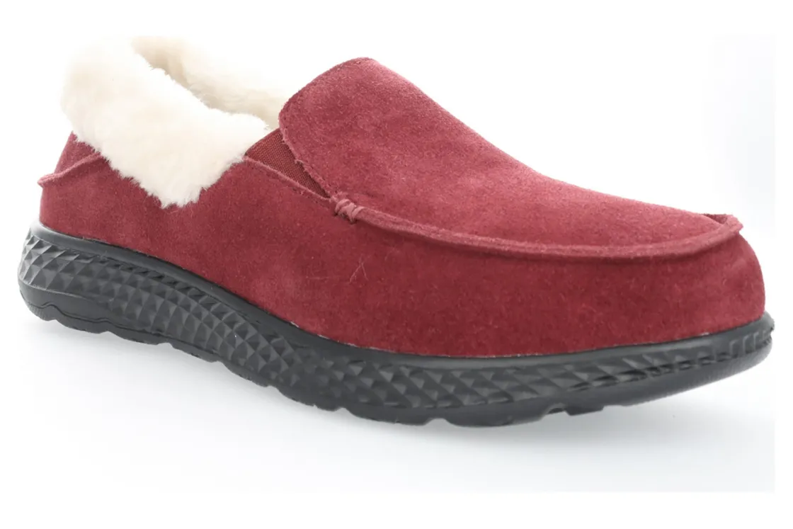 Propet Britt is a cozy, warm weather women’s slipper. These comfortable shoes have suede uppers, faux fur lining, removable footbed and EVA and rubber outsole. A moc toe construction, deep tread pattern and twin gores come together to create the only house slipper you’ll ever need.