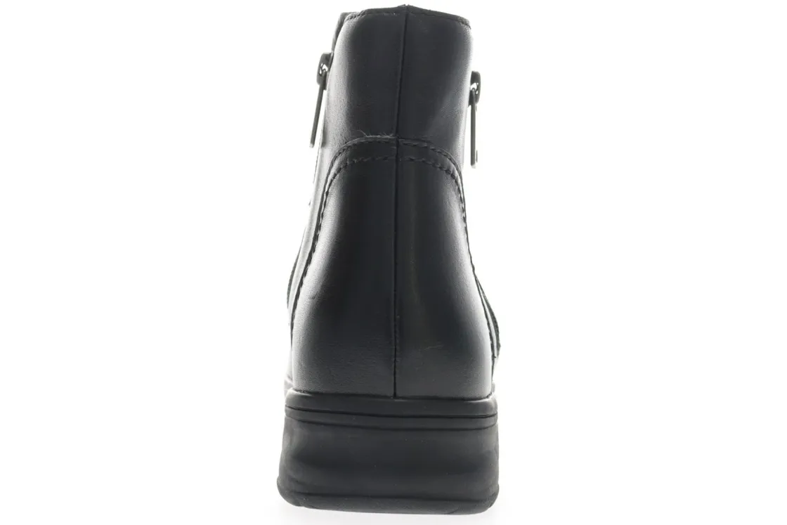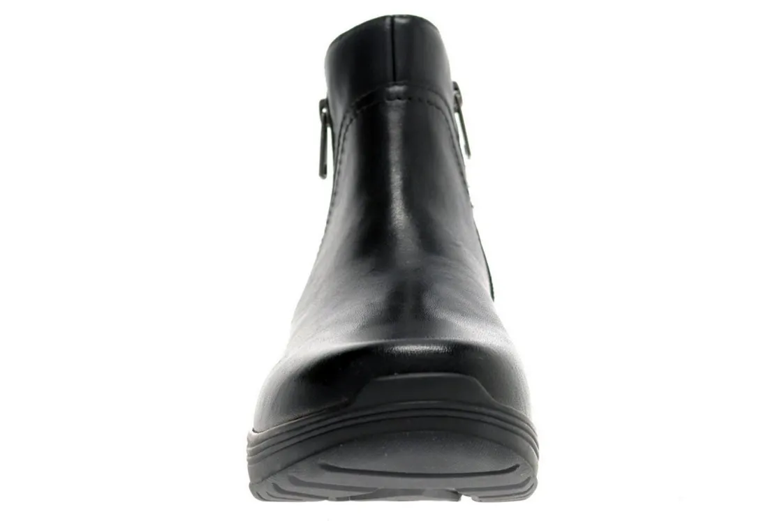 Propet Delphi is an elegant and comfortable bootie for any terrain. Prominent features include water-resistant leather uppers, removable insoles and high traction rubber outsoles.