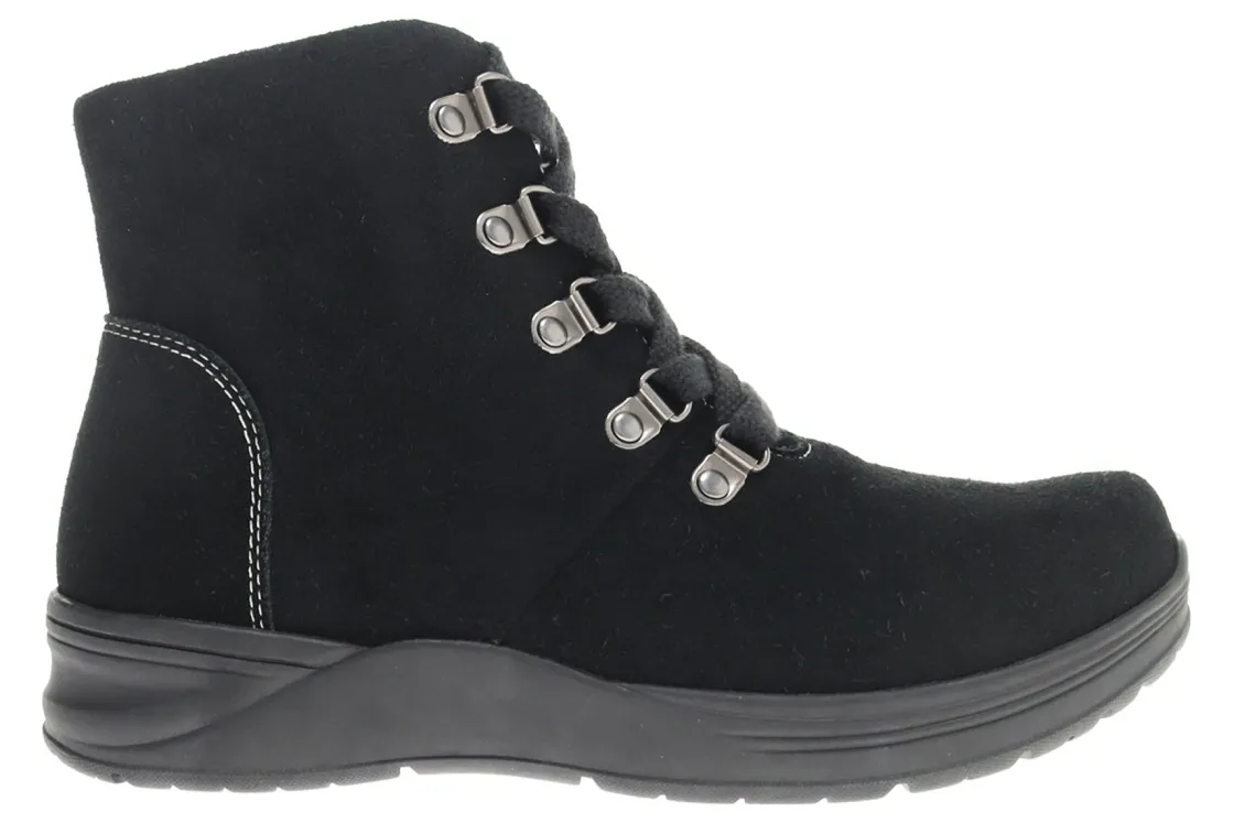 Propet Demi is a cozy and durable bootie for the colder months of the year. Prominent features include cow suede uppers with water-repelling Scotchgard™ treatment and a flexible rubber outsole.
