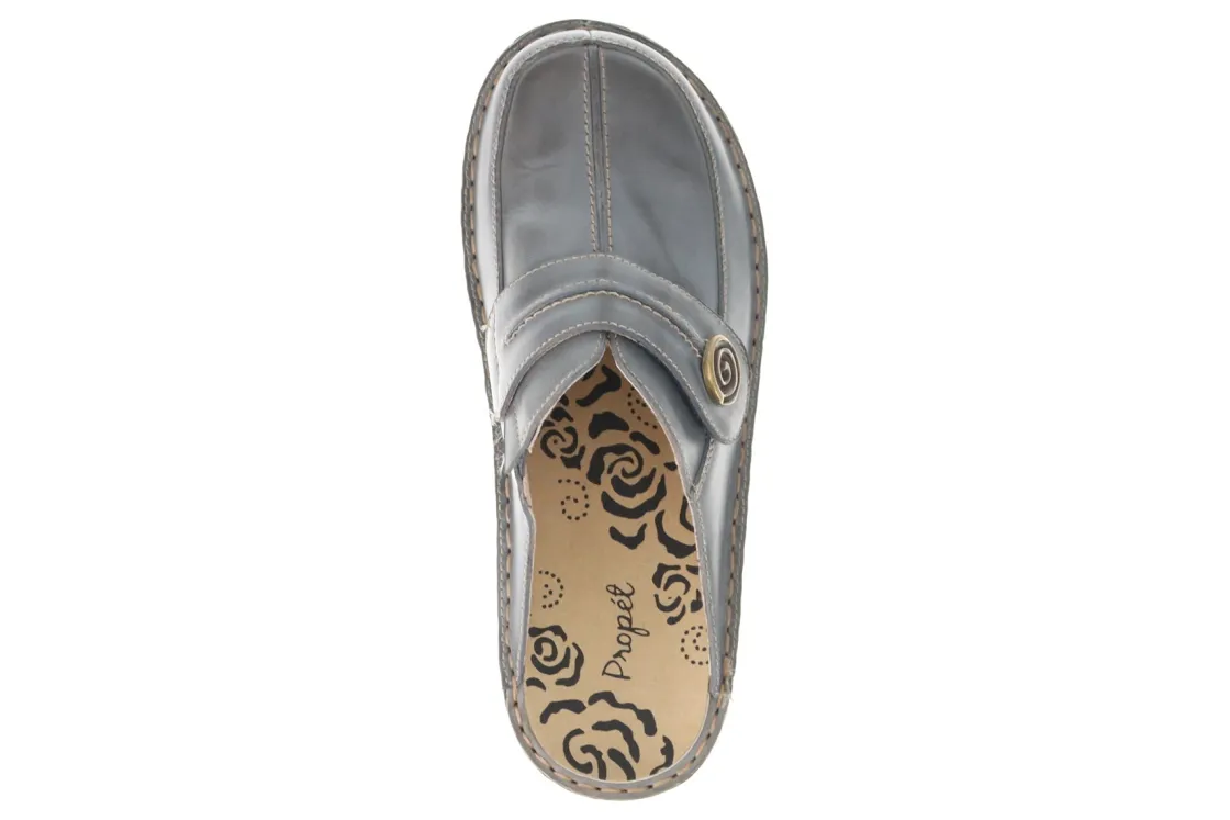 Full-grain leather slide with adjustable strap to get a snug fit and metal ornamentation. Extra-cushioned, removable PU insole with microfiber sock lining. Lightweight PU with slip resistant rubber inserts for added traction on wet or oily surfaces.