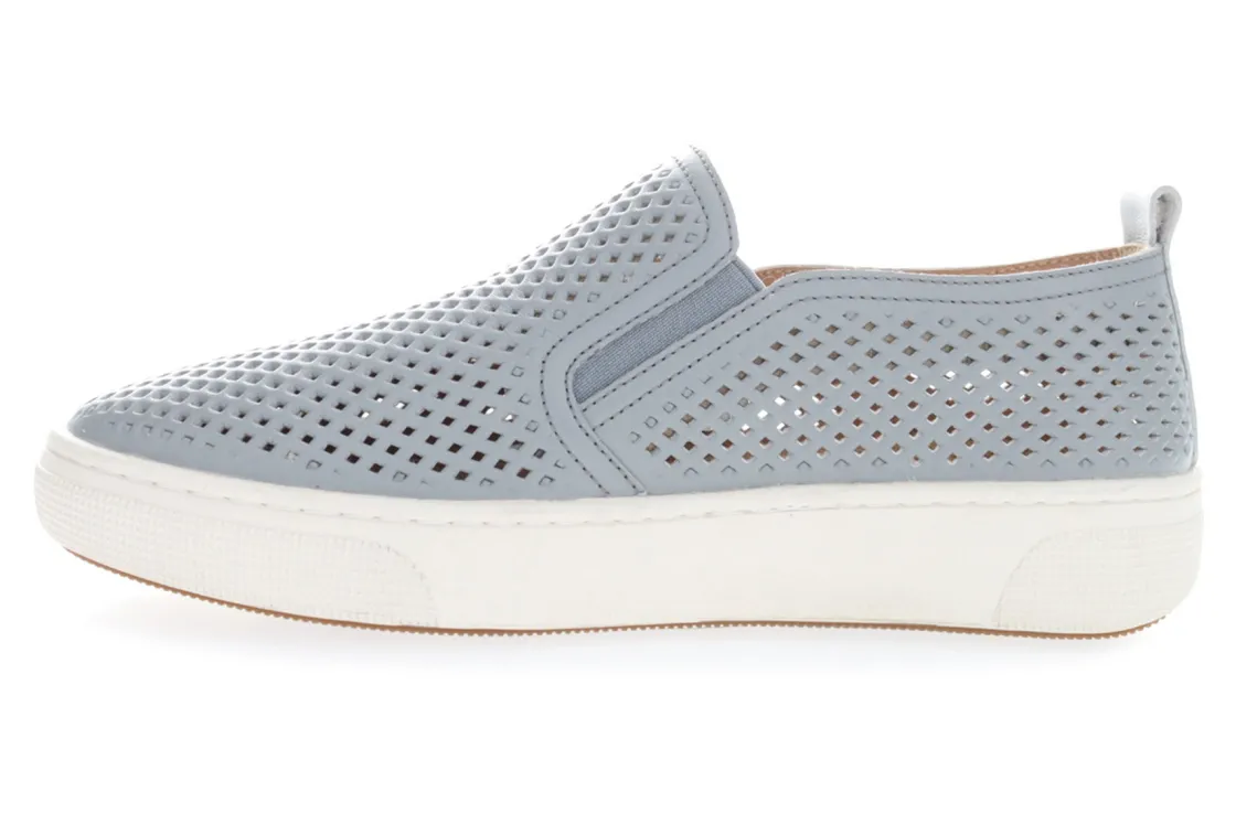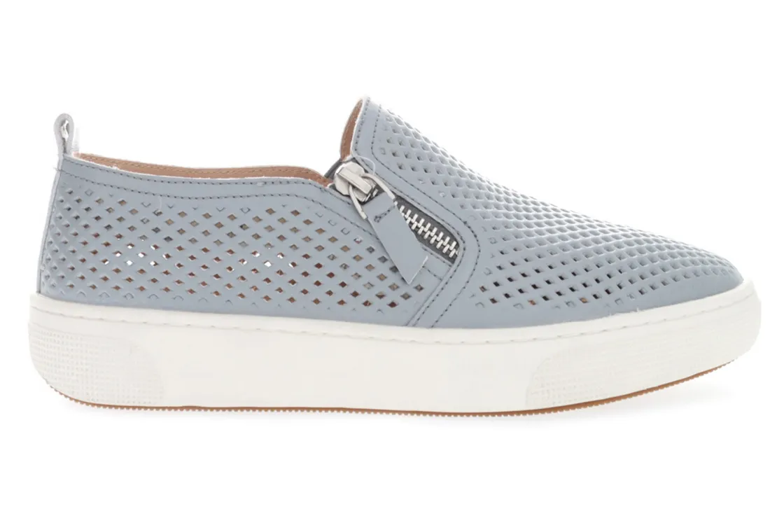 Perforated leather with side zip and tassle make this sneaker light and breezy. Breathable open cell PU with added heel cushion moves moisture from foot for a cooler, healthier footbed. Rubber cup outsole with our shock absorbing DuroCloud™ foam embedded midsole for responsive cushion. Removable footbed, DuroCloud™, A5500 pending.r