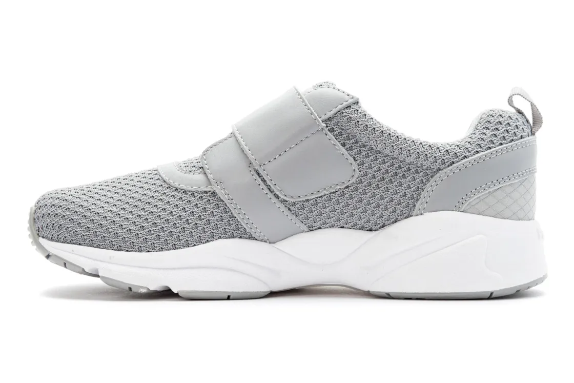 Get moving in absolute comfort with the women’s Propet Stability X Strap athletic shoe. The breathable mesh upper features an adjustable hook and loop strap for a secure and customized fit. The removable polyurethane insole is cushioned with a gel heel pad distributing optimal comfort for all day wear. The EVA midsole provides arch support, while the durable rubber outsole delivers traction and stability.