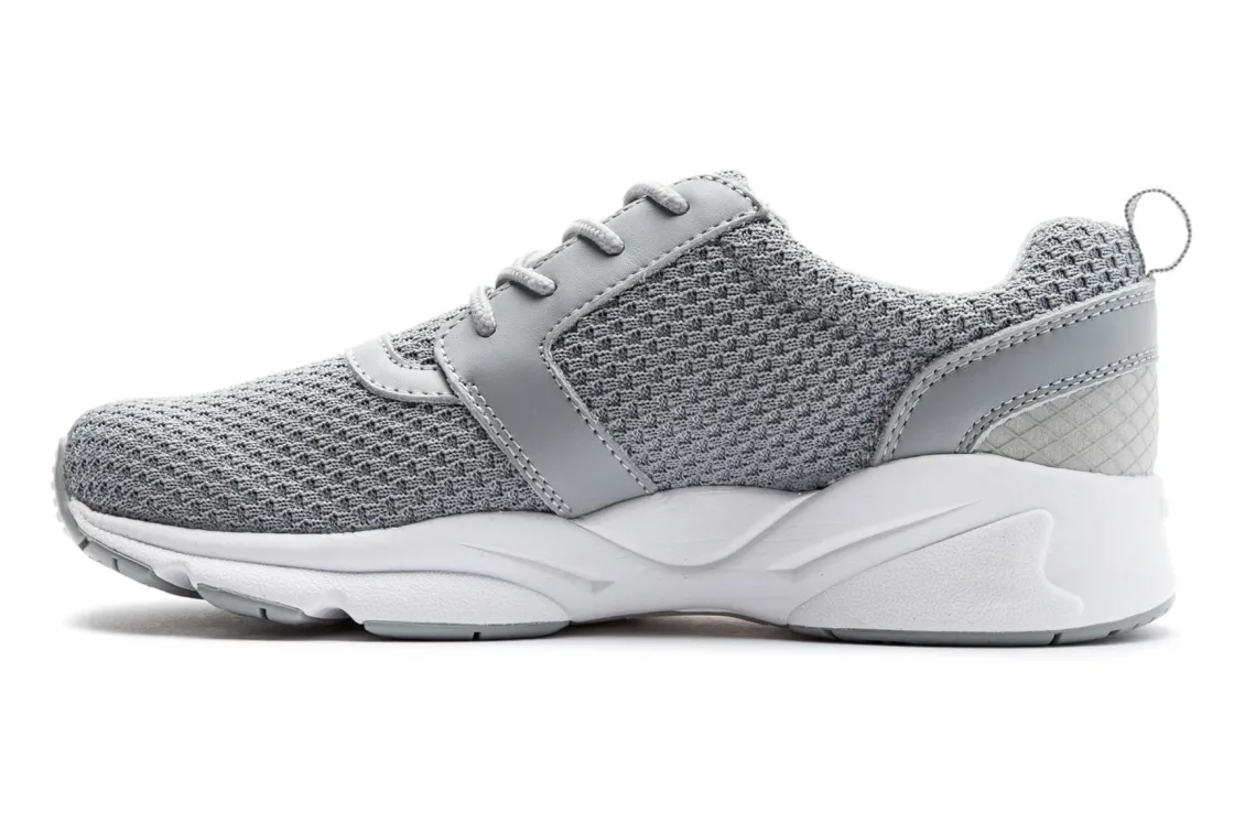 Propet Stability X is a comfortable active shoe. These chic sneakers have mesh and leather uppers, removable PU insoles, EVA midsoles and rubber outsoles. A brushed nylon lining wicks away moisture, while a padded tongue and collar adds all-day comfort.
