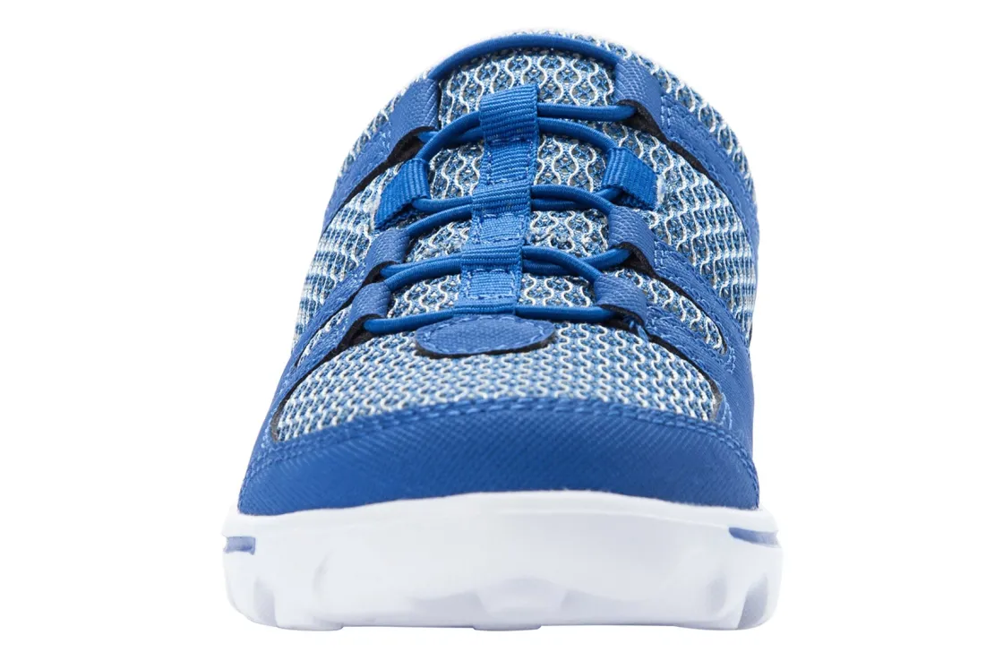 Enjoy lightweight comfort and sporty style in the women’s Propet TravelActiv Slide. The mesh upper and lining offer moisture-wicking, breathable comfort. The removable EVA footbed accommodates custom orthotics, while the EVA outsole provides traction and durability.