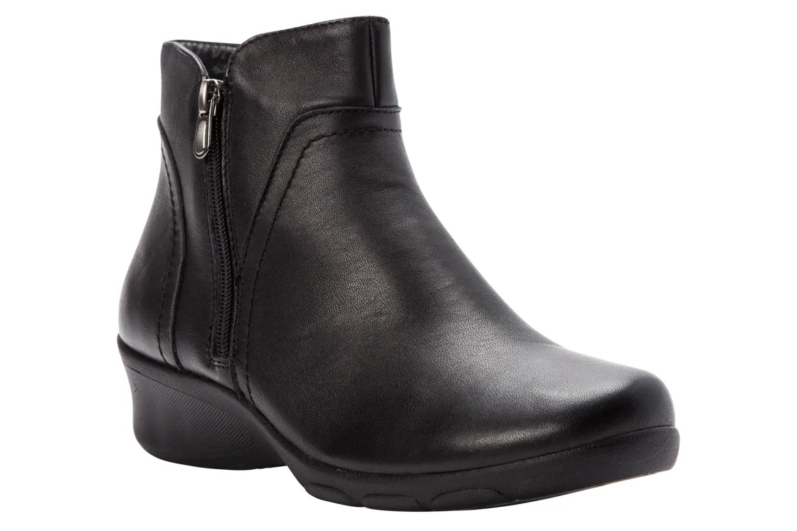 Enjoy a season of comfort with the women’s Propet Waverly bootie. Twin side zip-up closures offer an easy entry. The foam-cushioned footbed is removable to accommodate custom orthotics for a more personalized fit. The durable outsole provides traction and stability for all-day wear.