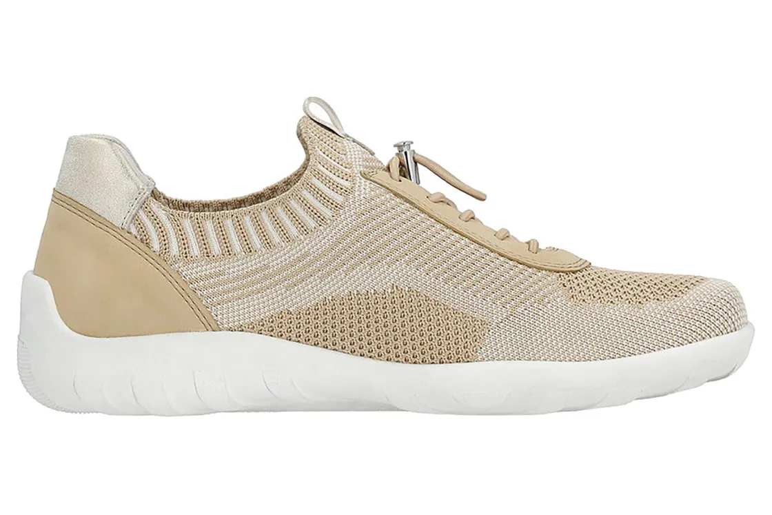The Remonte Liv 18 is a casual women’s sneaker style walking shoe with a soft and breathable knit fabric upper and easy bungee lacing system. These Remonte Liv 18 Stretch Fabric Women’s Shoes have the following features: