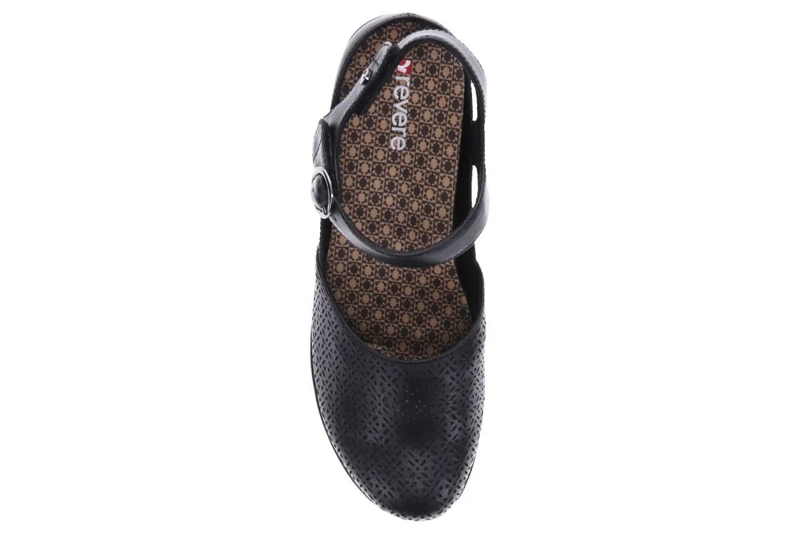 Revere Calabria back strap sandal features beautifully crafted laser cutouts across the forefoot, that not only enhance the look of this classy wedge, but also provides seamless comfort for your toes. Maximum adjustability around the ankle with a faux buckle detail, and adjustable back strap.