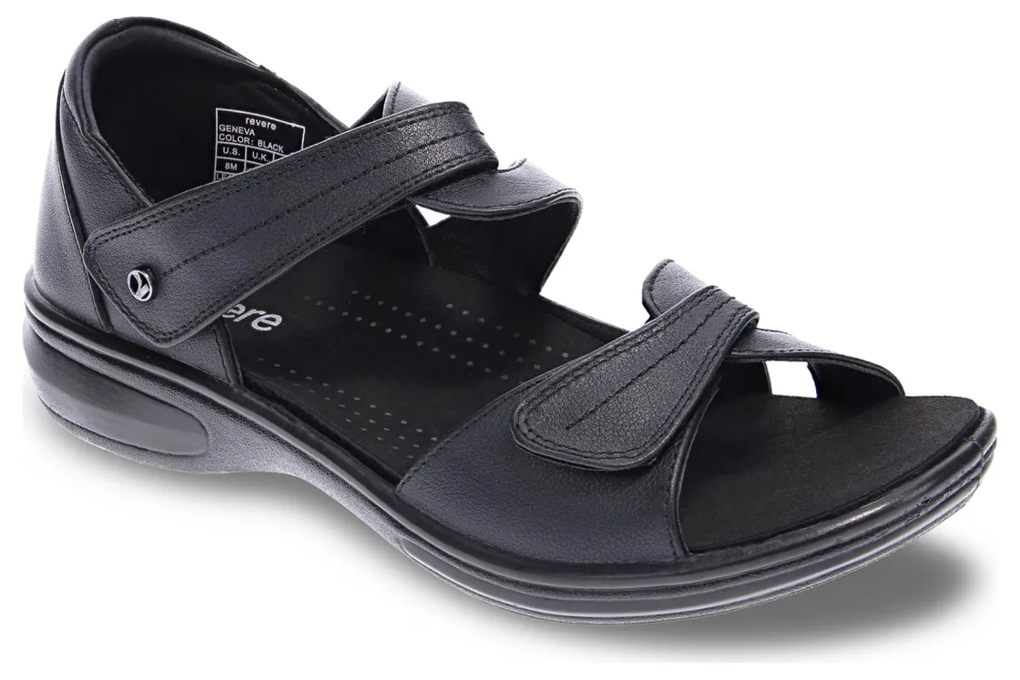 Revere Geneva is a stylish and comfortable sandal. Features include a leather upper and lining, removable comfort footbed and sturdy PU midsole and outsole. Adjustable straps, padded heel collar and ultra-secure vamp outlines these trendy sandals.