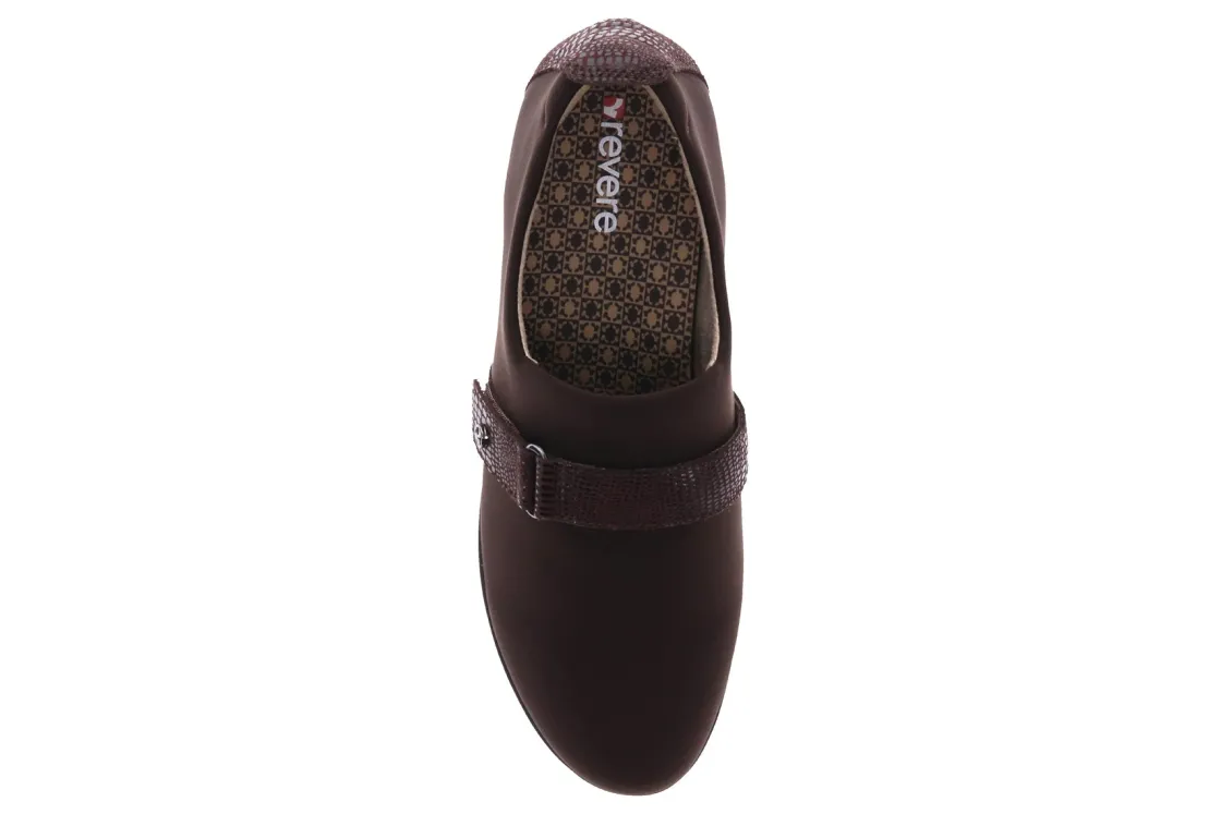Revere Genoa is an upscale and comfortable stretch loafer. These chic shoes have a stretch textile upper, contoured footbed and slip-resistant outsole. A forefoot cushion zone provides added comfort, an adjustable strap secures feet, while matching strap extenders offer extra width.
