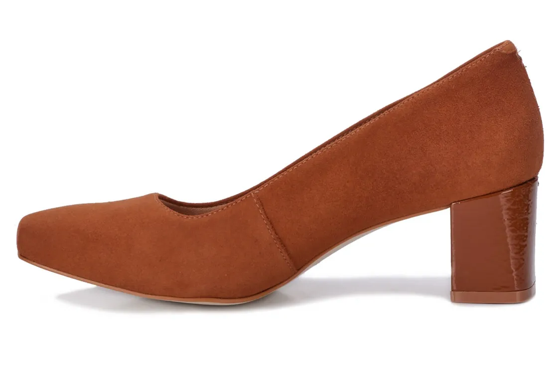 Ros Hommerson Meredith is the pump: perfected! Elevate your style with this all-day pump made from luxurious suede leather with a patent leather covered heel. Designed with an on-trend slightly squared tapered toe, a notched block heel and unexpected super cushioned Tiny Pillows insoles, this amazing pump will take you everywhere your busy day demands – in total comfort!