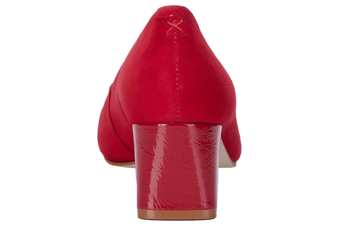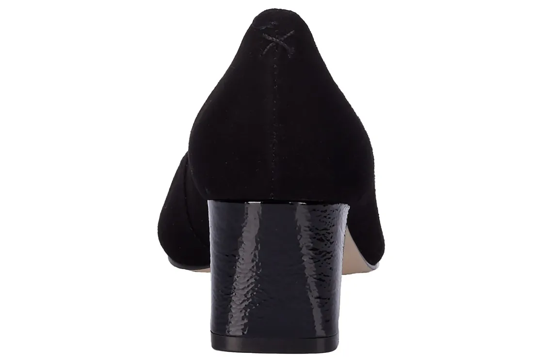Ros Hommerson Meredith is the pump: perfected! Elevate your style with this all-day pump made from luxurious suede leather with a patent leather covered heel. Designed with an on-trend slightly squared tapered toe, a notched block heel and unexpected super cushioned Tiny Pillows insoles, this amazing pump will take you everywhere your busy day demands – in total comfort!