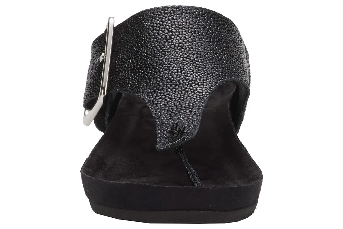 Everyone loves a great footbed sandal, and Phoebe tops the charts! Ros updates the classic thong with a fashionable oversized adjustable buckle. This easy-going sandal not only provides modern styling, but also the unmatched comfort of our signature Tiny Pillows built right into the sueded microfiber footbed, providing cushioning not typically found in most footbed sandals.