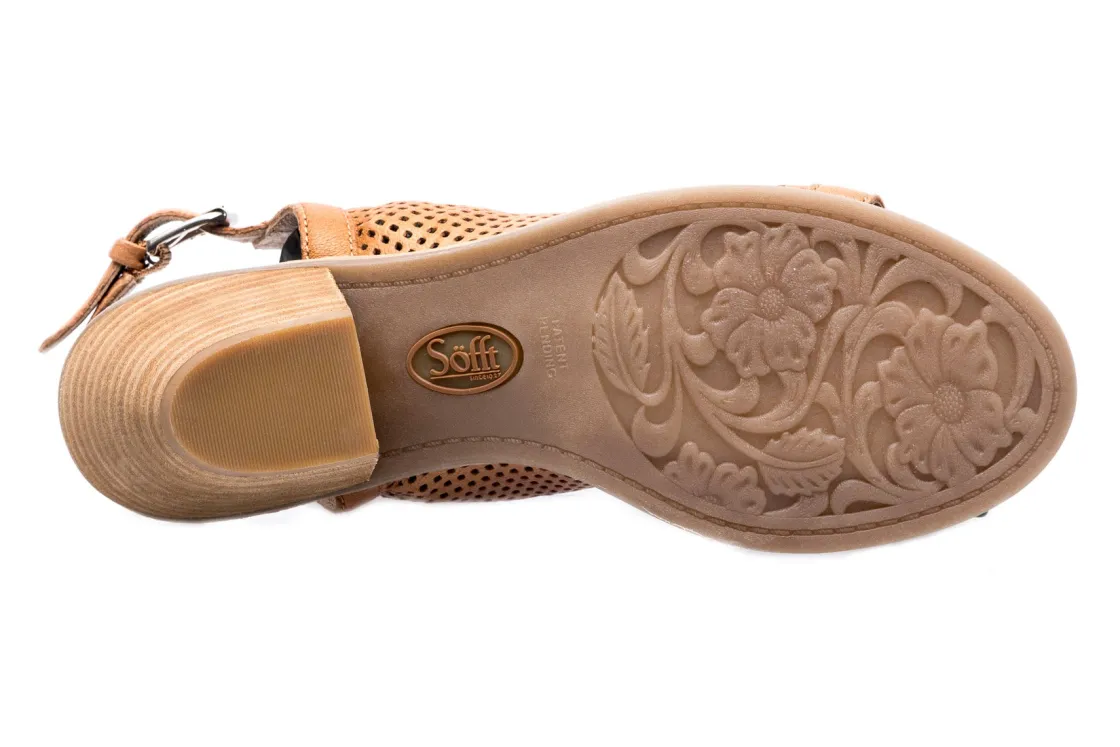 Sofft Milly is a block heel sandal for any occasion. This slingback silhouette has a perforated leather upper, adjustable buckle and flexible TPR outsole. A cushioned footbed, leather lining and 3-inch heel height outlines these trendy summer sandals.