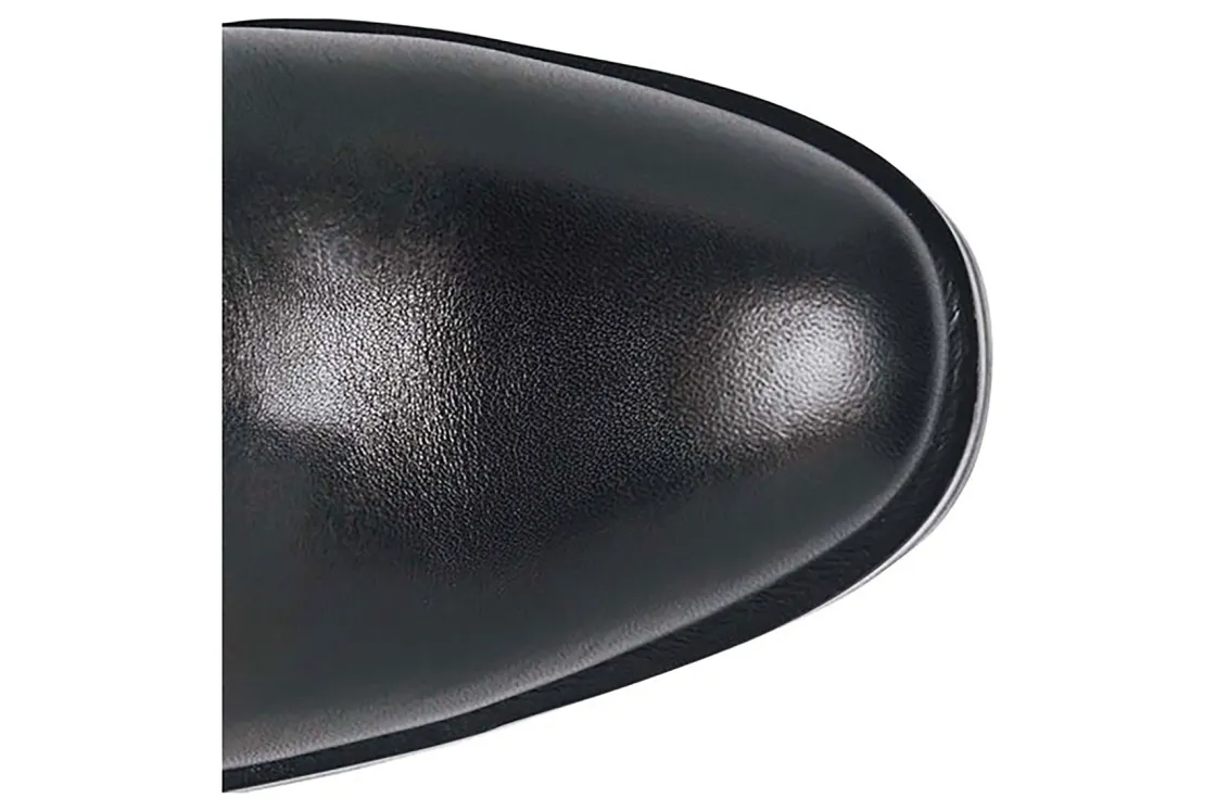 The Sofft Shelby is designed with a stovepipe shaft – a straighter, wider column shape than typical riding boots, so it’s easy to wear with wider leg pants. The gorgeous scalloped topline and stitching give it a western-inspired touch.