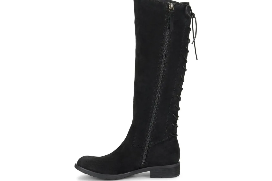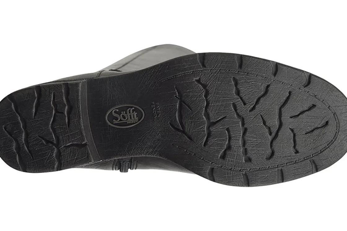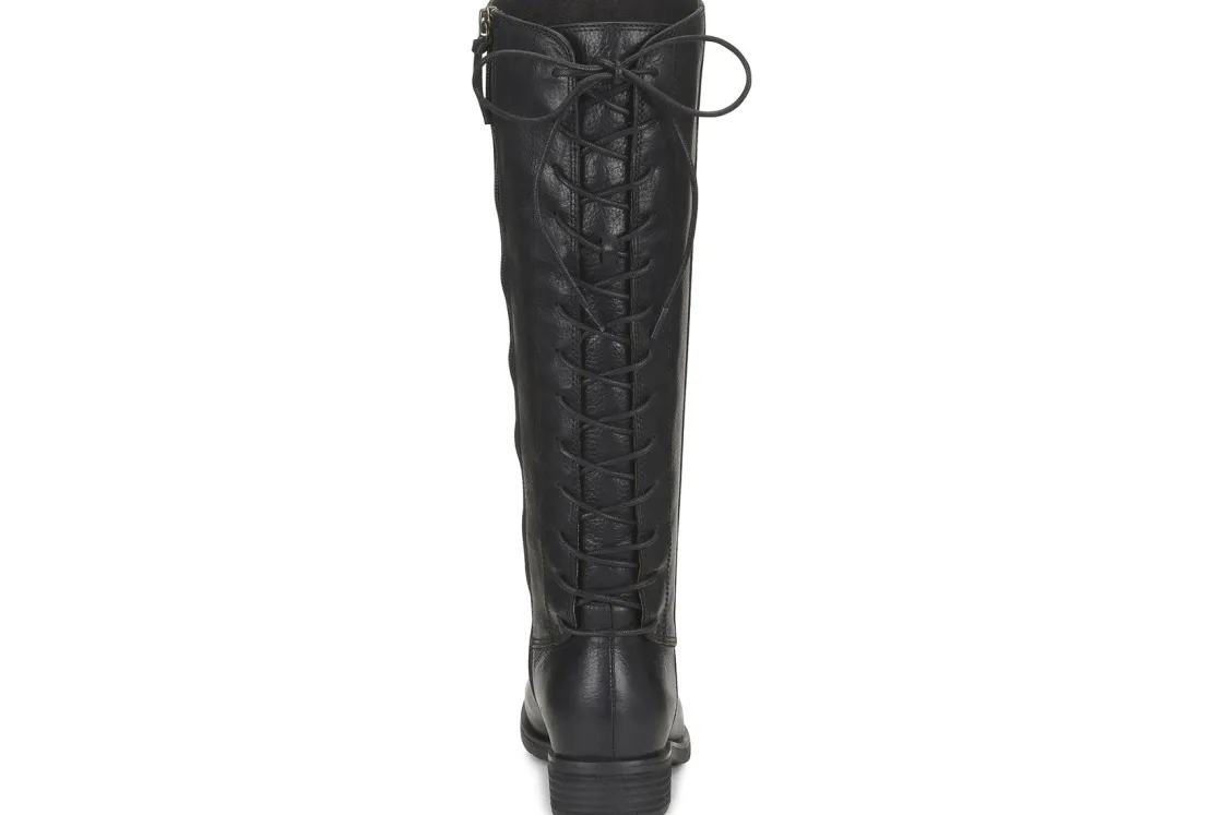 The women’s Sofft Sharnell II boot will be the perfect addition to your cold weather wardrobe. The unique lace up closure at the rear of the shaft provides a fully adjustable fit that accommodates a narrow and wider calf. A side zipper provides easy entry. The leather-covered, cushioned footbed delivers comfort in every step, while the flexible rubber outsole provides superior traction. Packed with unrivaled comfort, the Sharnell II will be a seasonal staple!