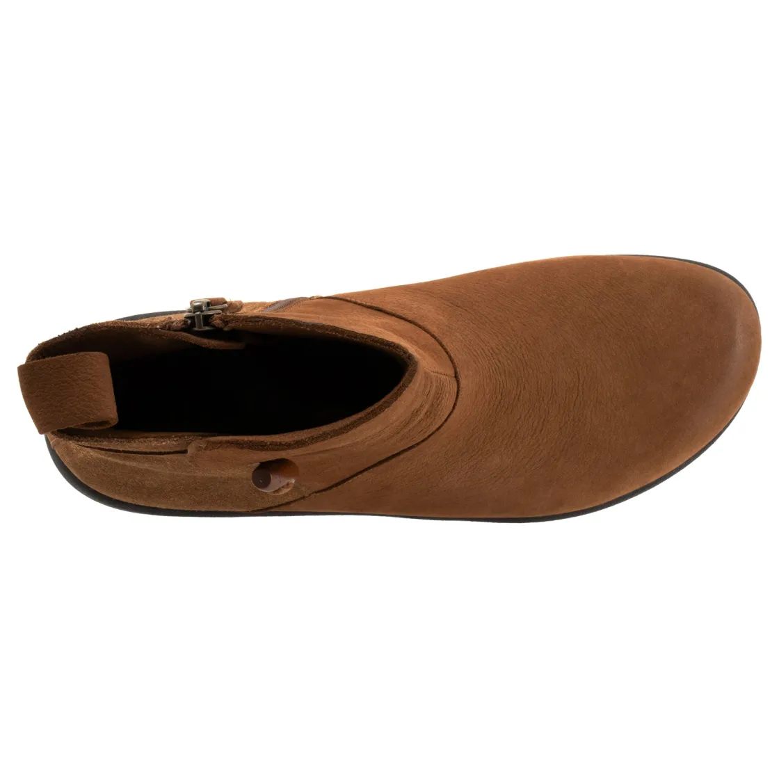 The Adelaide is a cute casual boot that has chelsea style with a wooden button on the outside but also features a inside zipper. Adelaide has a cushioned footbed that is removable and has arch support.