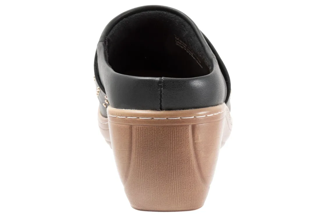 Softwalk Marana is a cute and sophisticated clog. Prominent features include leather uppers, a removable cushioned footbed and a slip-resistant rubber outsole. A microfiber lining, elastic goring, supportive steel or iron shank and 2 ¼ inch heel height elevates these versatile clogs.