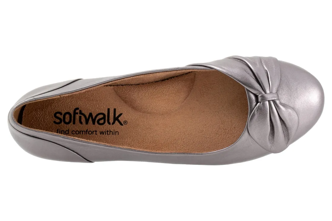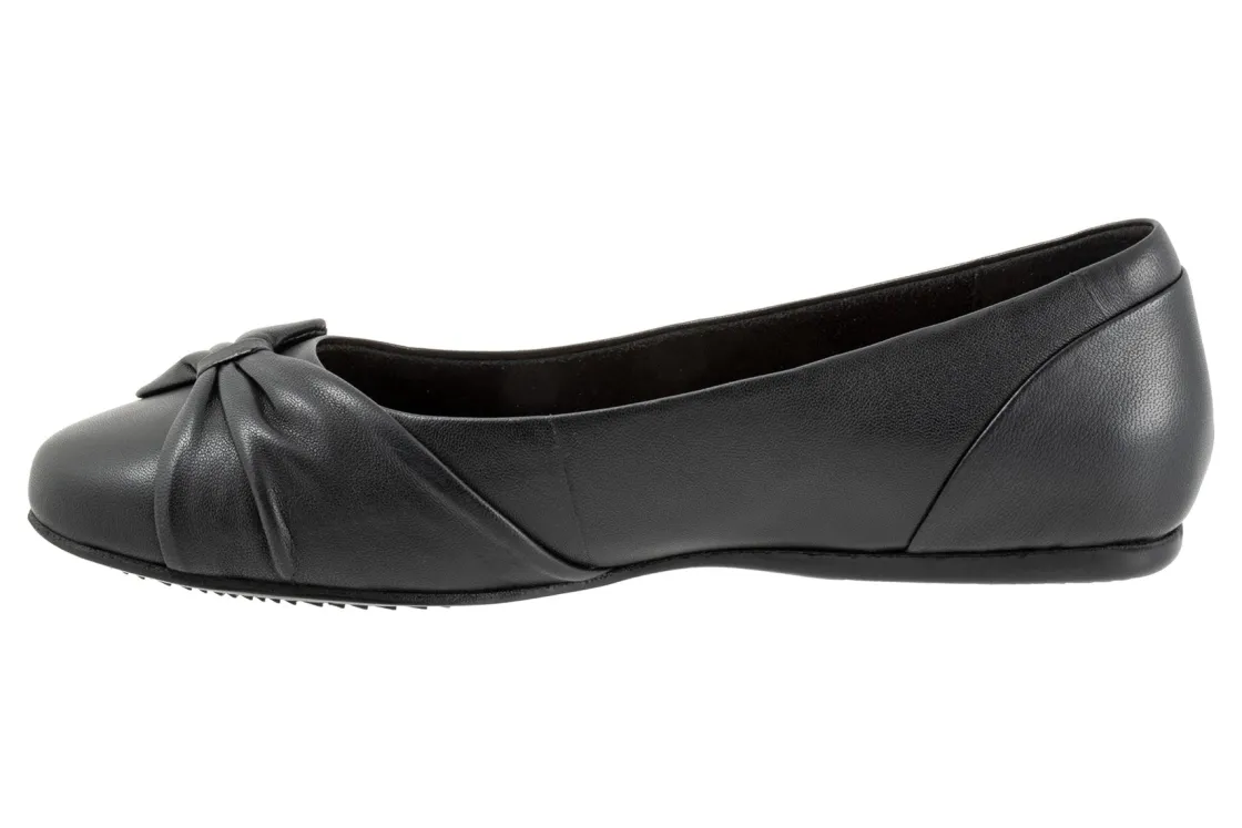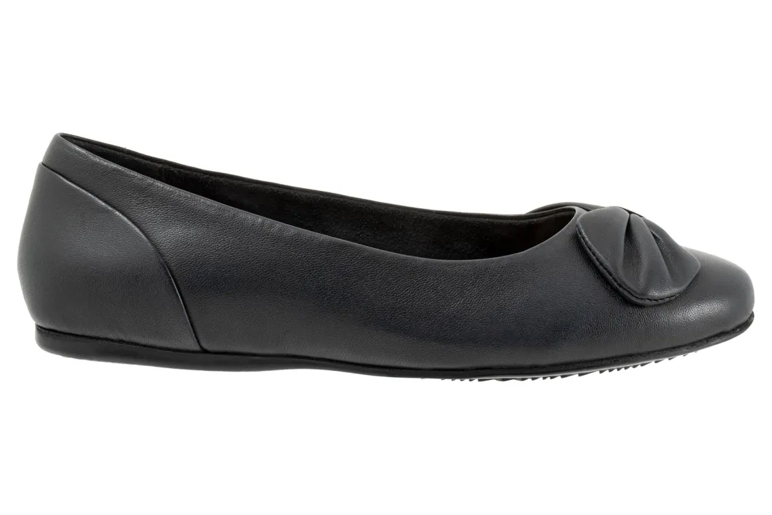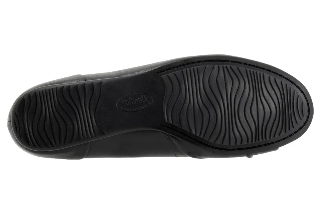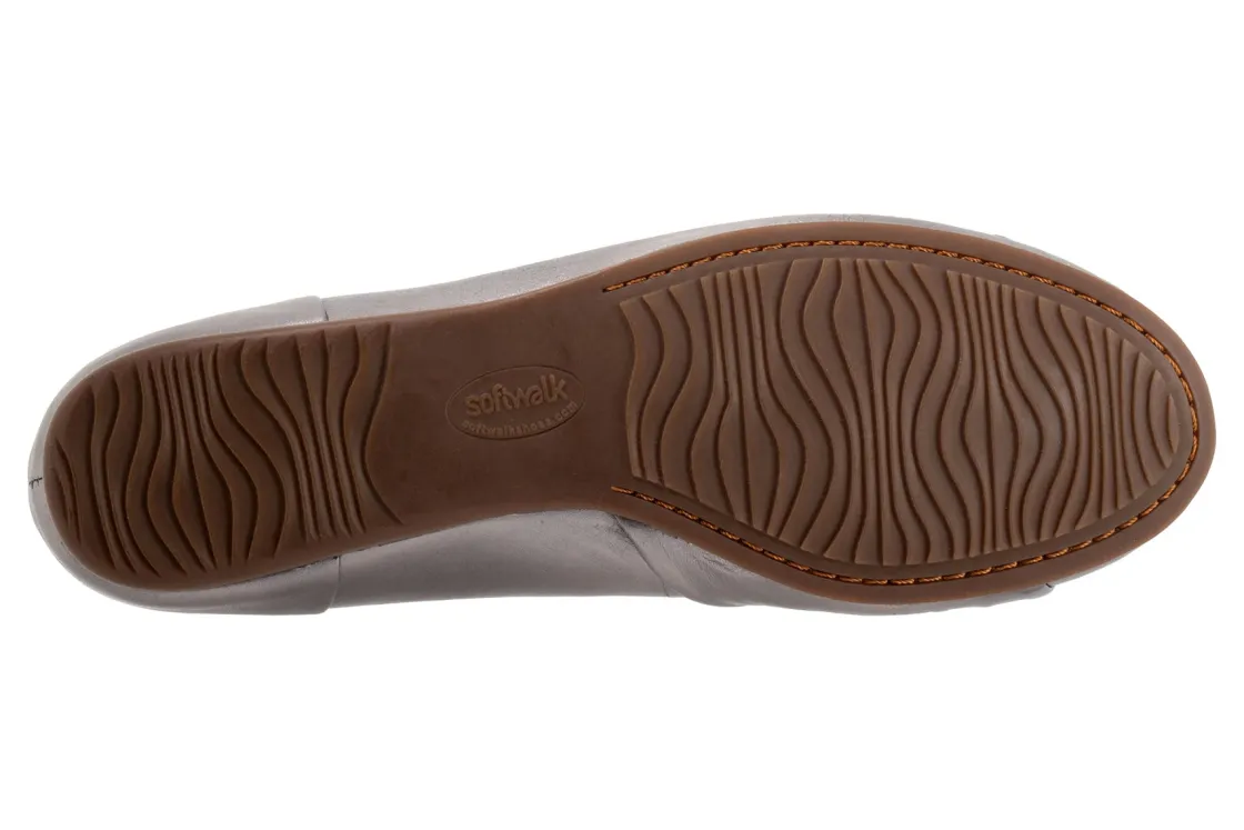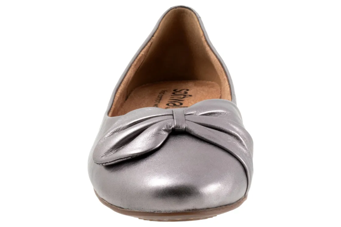 A strap of leather gathers on the toe of the Sofia flat for a unique asymmetric design. A flexible rubber sole and foam-cushioned removable footbed provide unparalleled comfort with casual appeal.