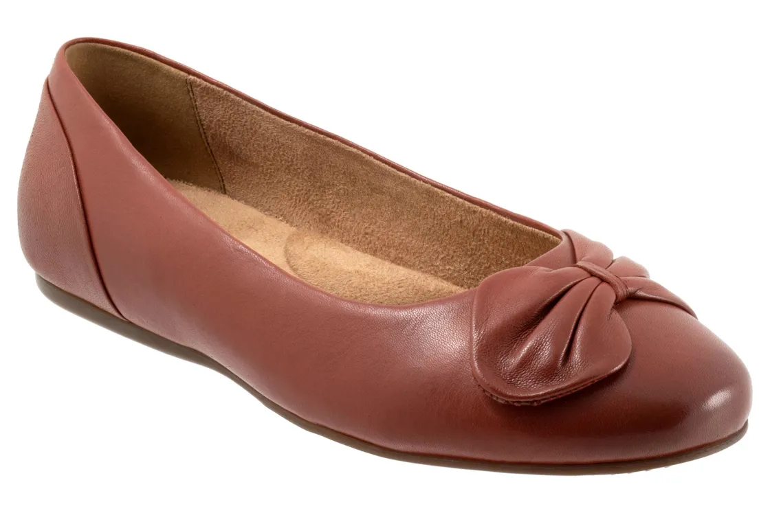 A strap of leather gathers on the toe of the Sofia flat for a unique asymmetric design. A flexible rubber sole and foam-cushioned removable footbed provide unparalleled comfort with casual appeal.