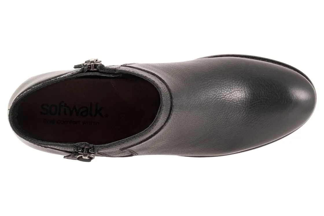 Softwalk Rubi is a comfortable and stylish ankle boot. These cold weather shoes have leather uppers, a cushioned removable footbed and rubberized outsole. A microfiber lining, dual zippers and a 1 ¼ inch stacked heel height will make these boots a wardrobe staple.