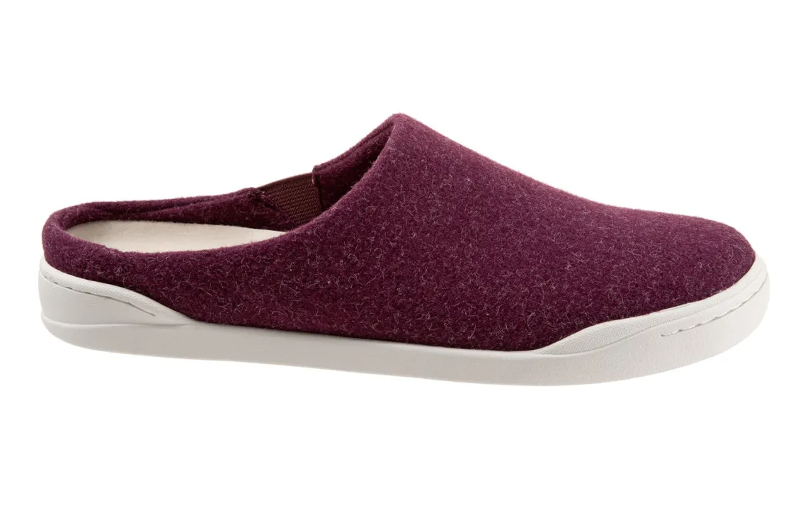 Softwalk Auburn is a mule sneaker with comfortable slipper features. These versatile shoes have leather and felt uppers, cushioned footbed and rubber outsole. A lightweight EVA midsole, elastic goring and breathable textile lining outlines these reliable mule sneakers.