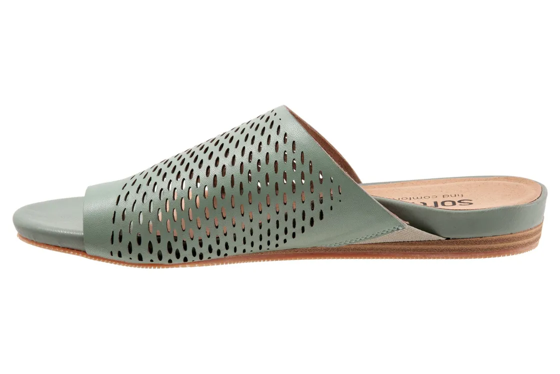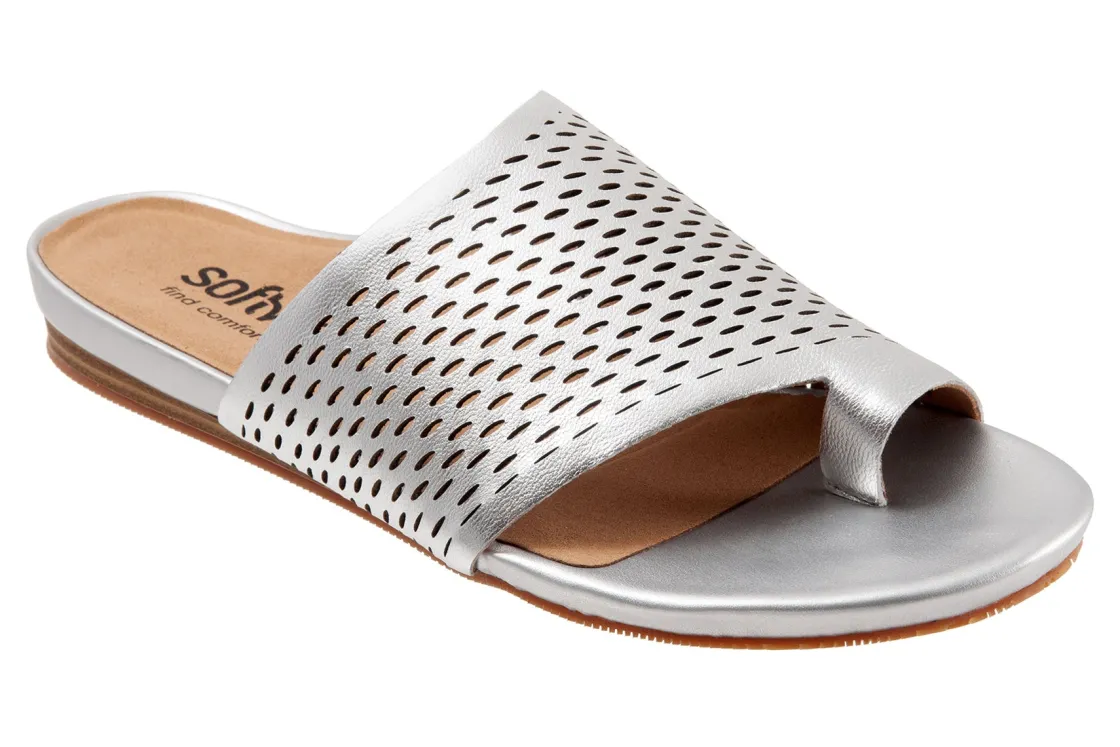 Softwalk Corsica II is a comfy sandal with geometric perforations. These warm weather shoes have leather uppers, memory foam and EVA midsole and rubber outsole. An asymmetric toe ring, microfiber lining and elastic goring makes these sandals ready for summertime adventures.