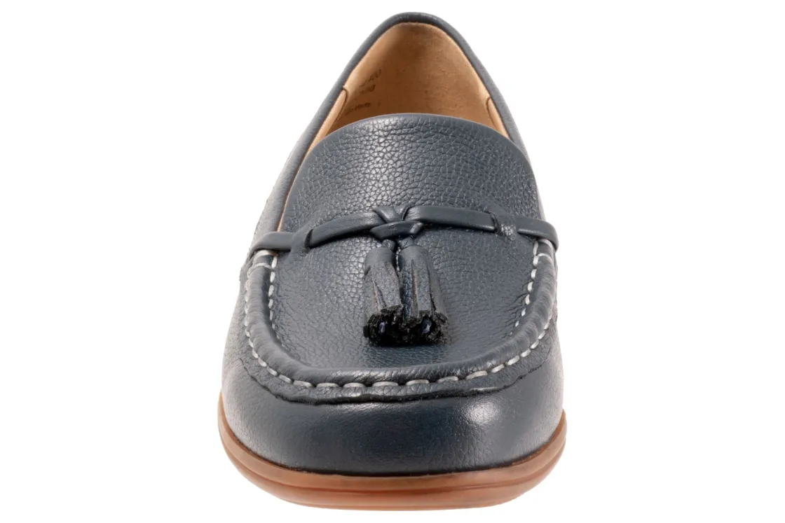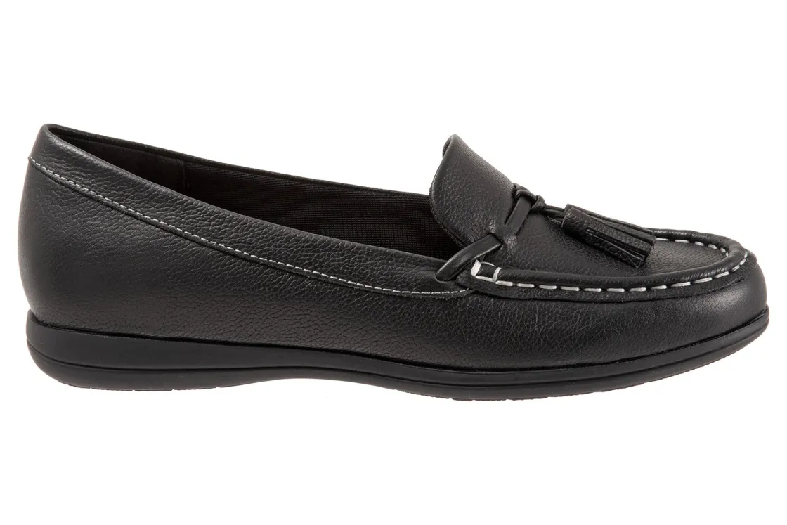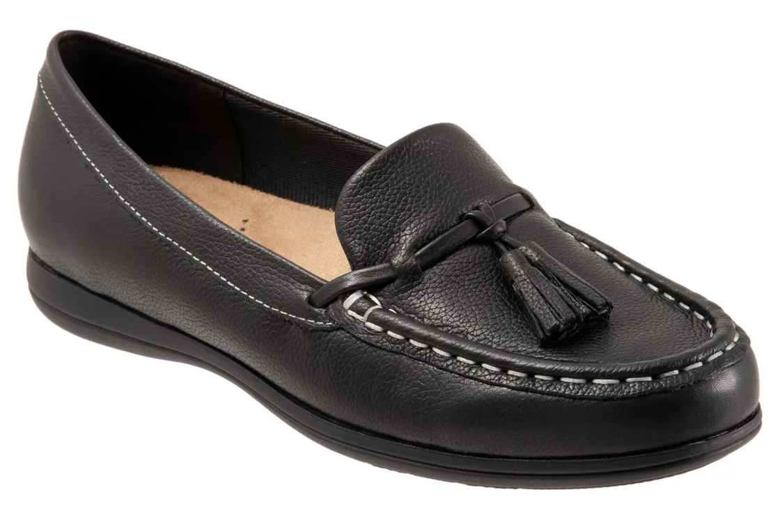 Trotters Dawson is a cute and comfy moccasin style loafer. These versatile shoes have leather uppers, removable cushioned footbed and molded rubber outsole. A tricot fabric upper lining, dual tassels, detailed stitching and 1-inch heel height will make these loafers a wardrobe staple.