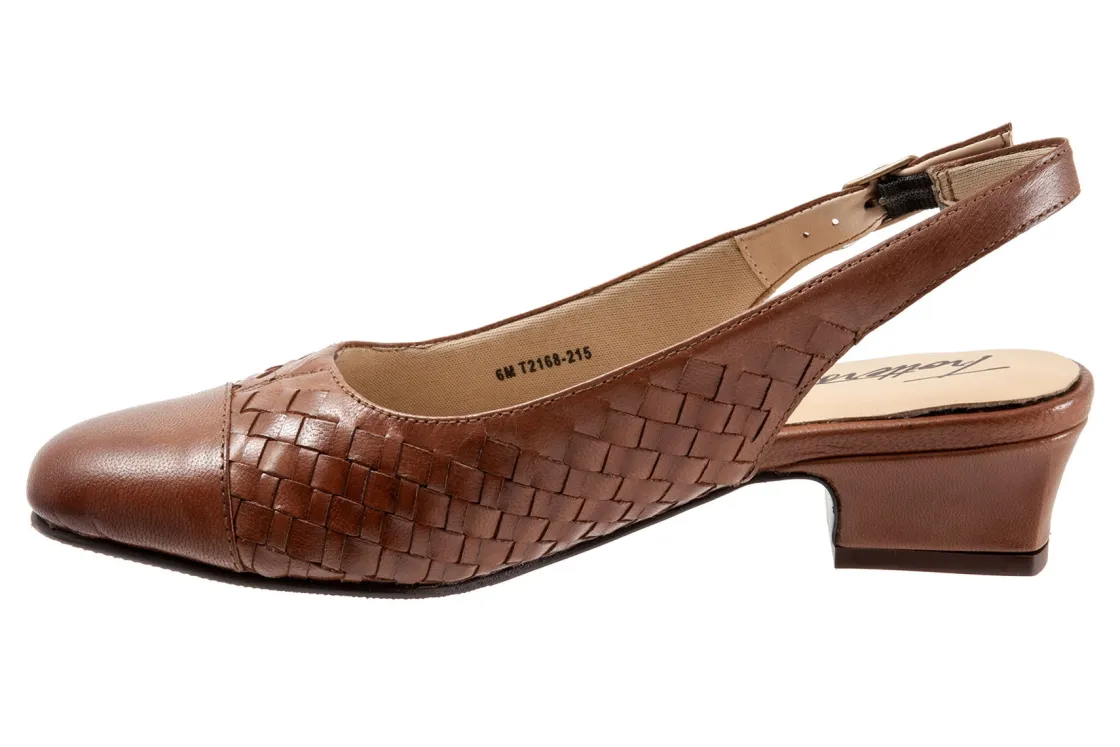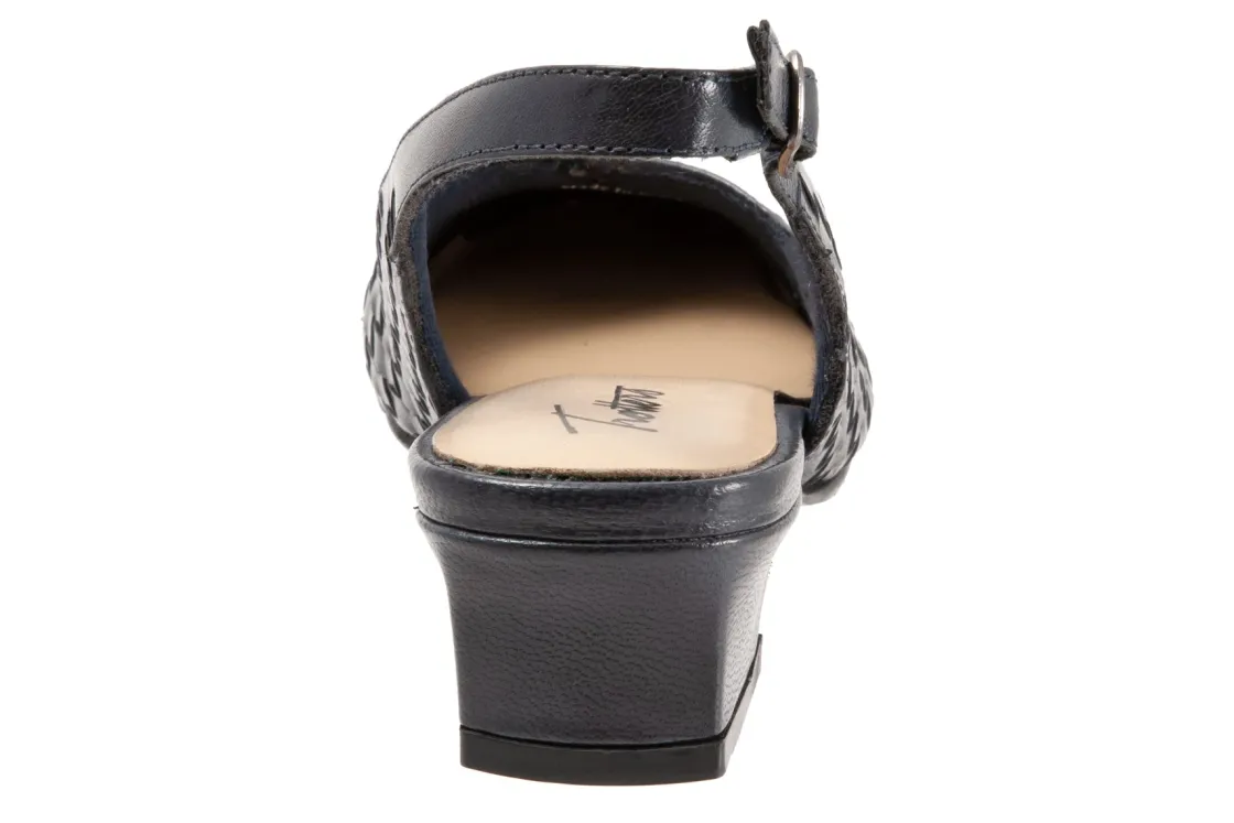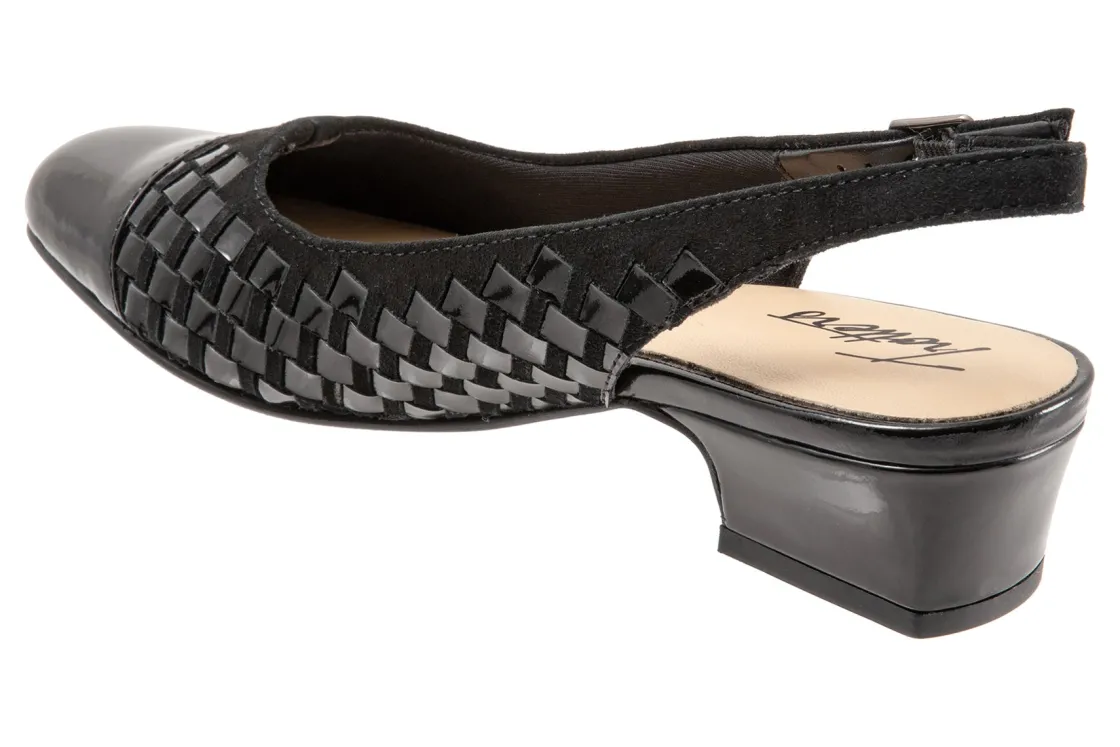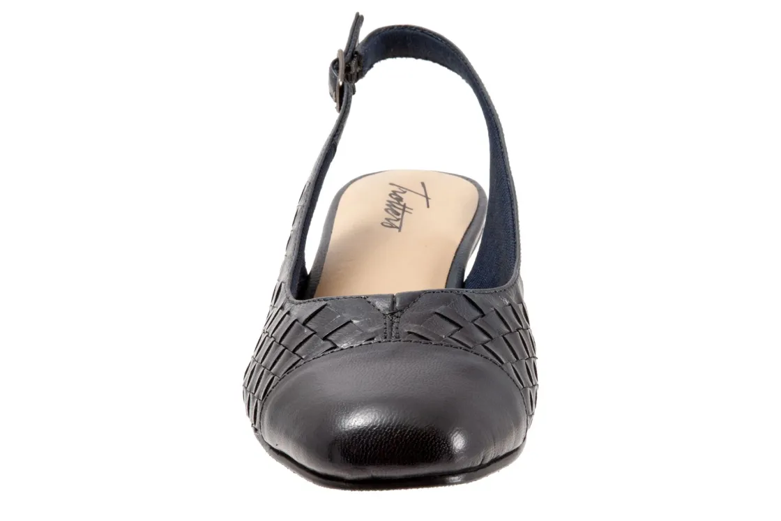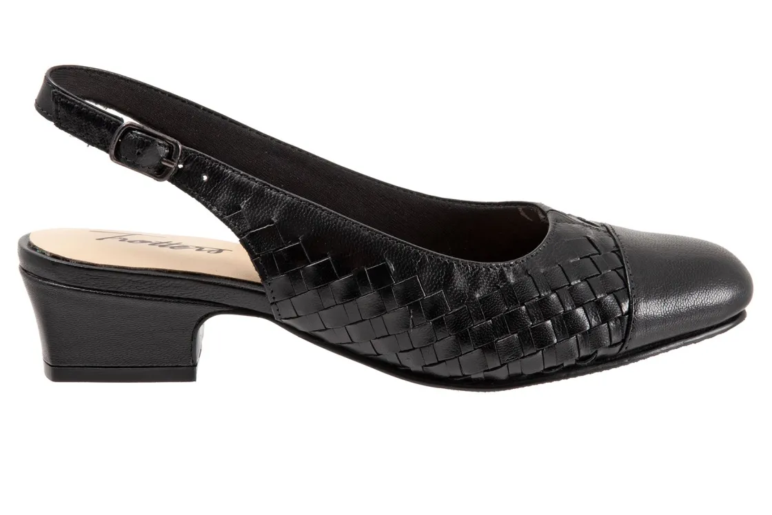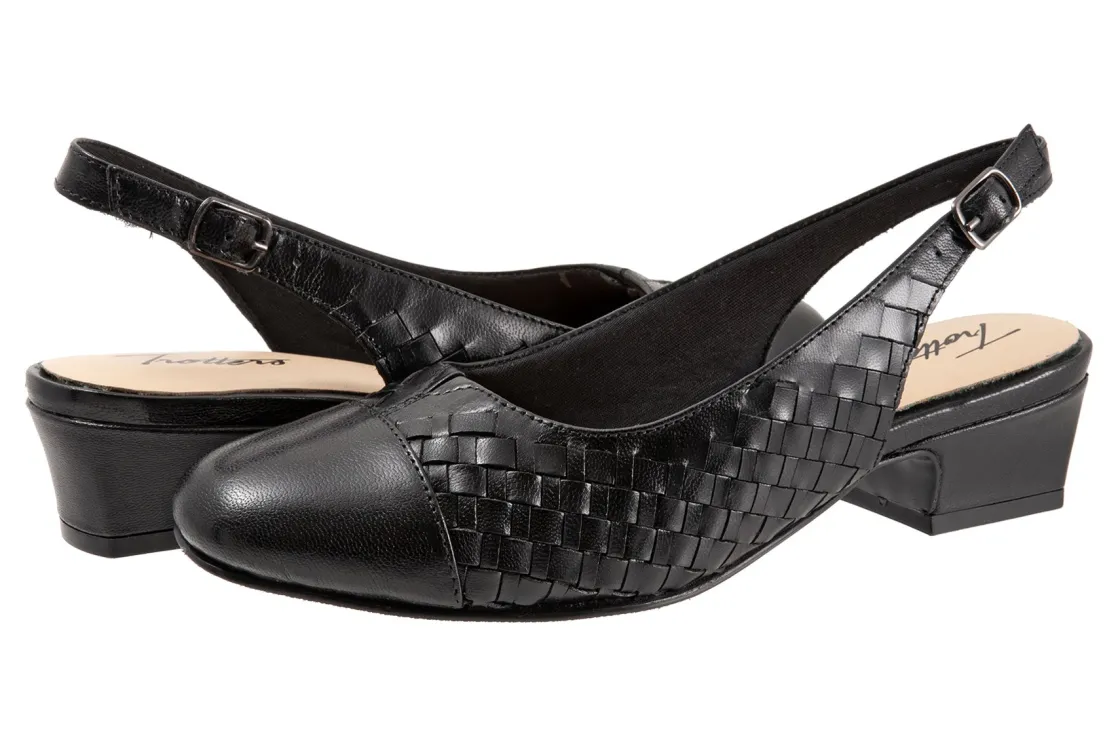 Trotters’ best-selling Dea gets the woven treatment which gives this slender sling-back pump a whole new character. Trotters Dea Woven features soft lining and a cushioned footbed.