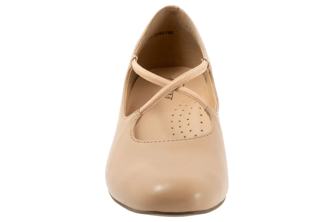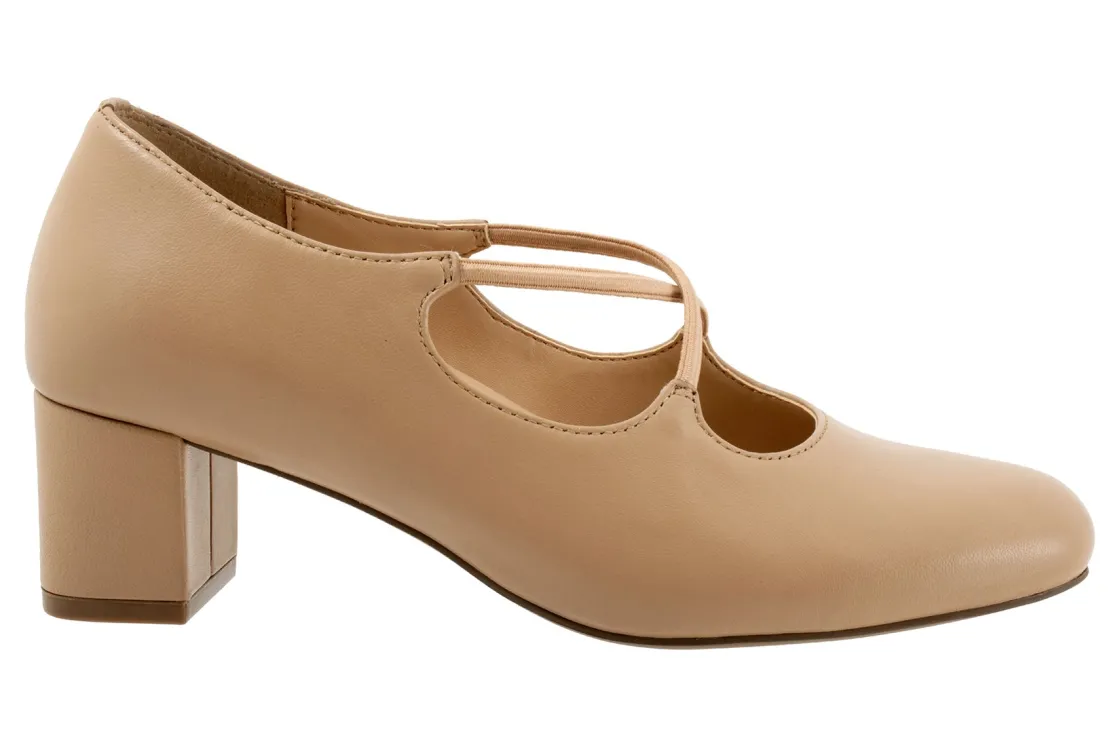 The Demi is ready for dancing or a night out with a cross-strap design of elasticized gore straps for a custom fit. The footbed is cushioned and has arch support.