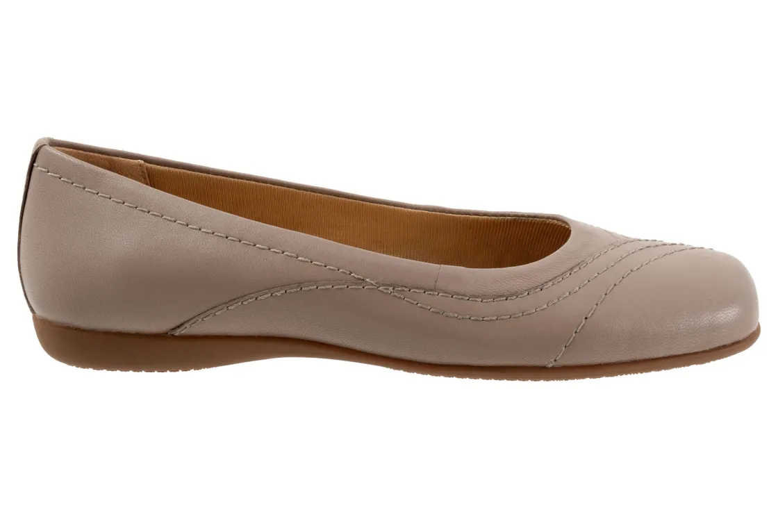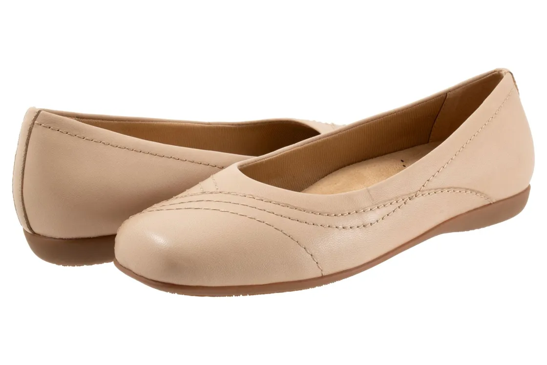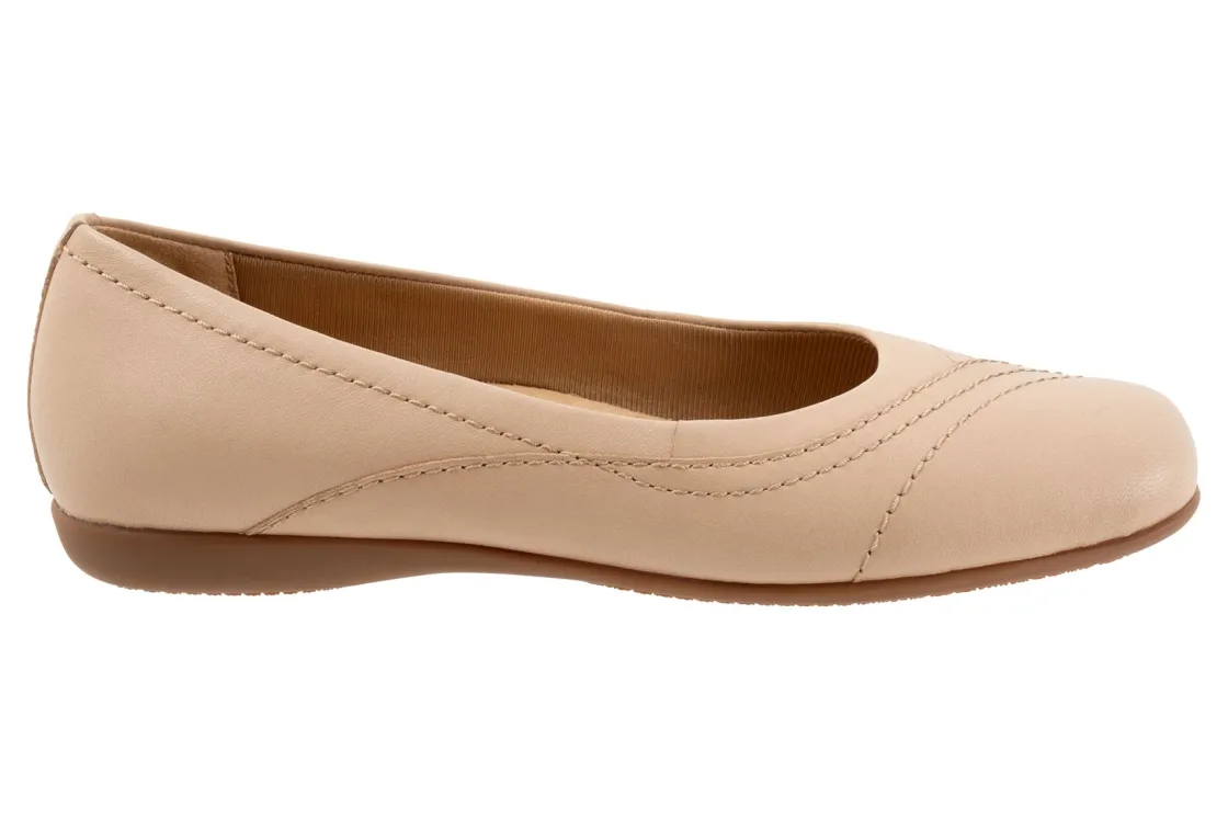 Wavy lines of stitching and overlapping leather give the Sasha flat a sense of whimsy. The removable footbed is cushioned and has arch support and the long-wearing sole is a Trotters best seller.