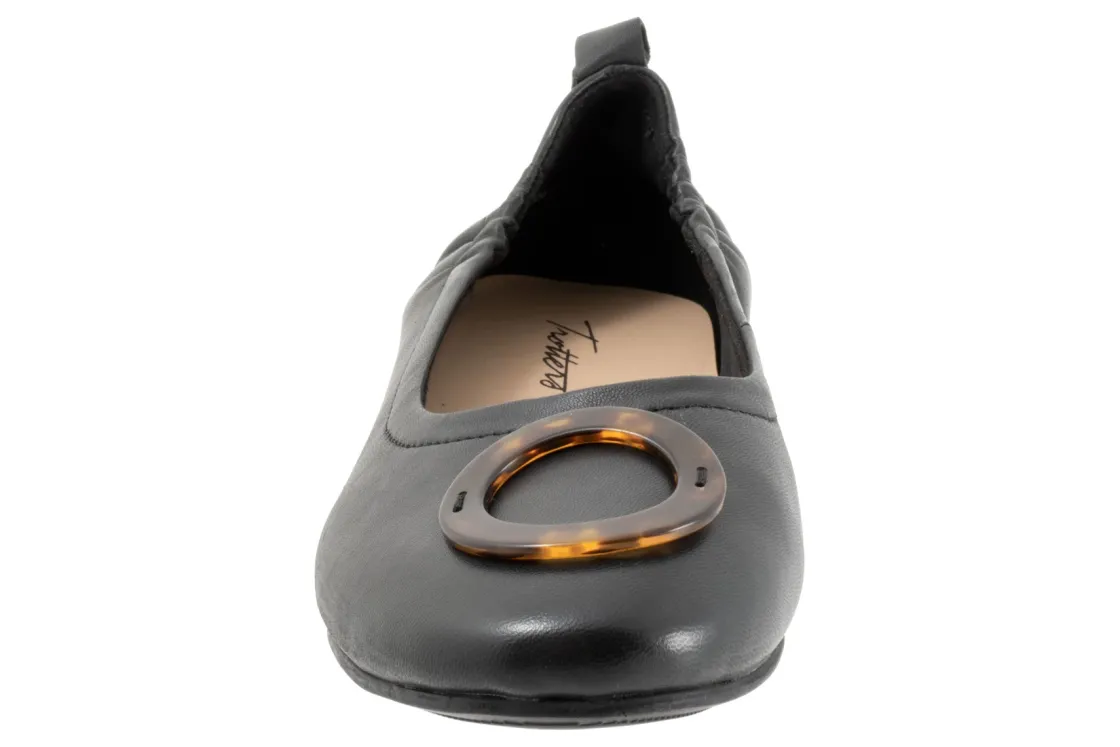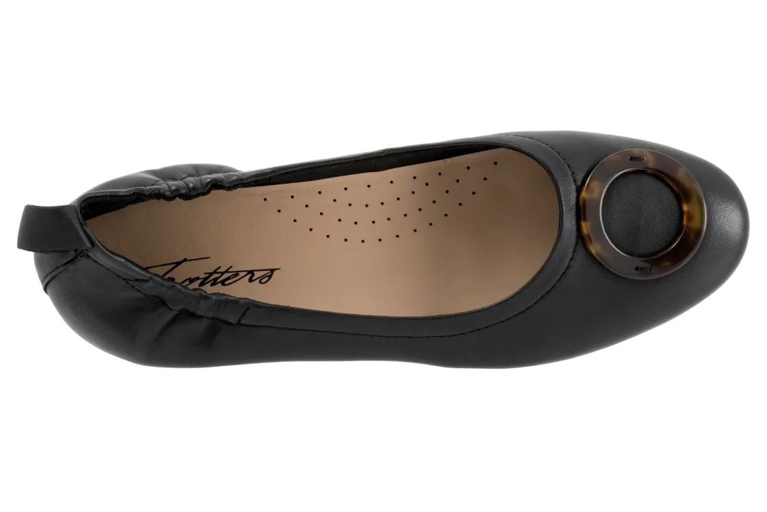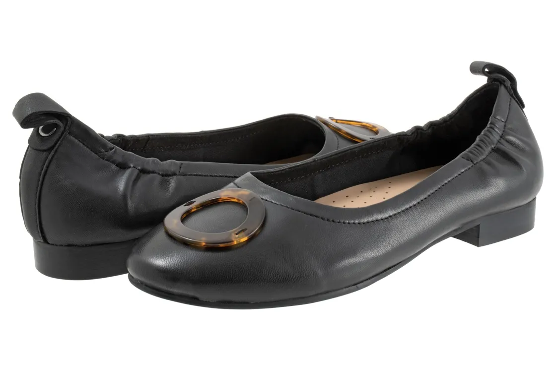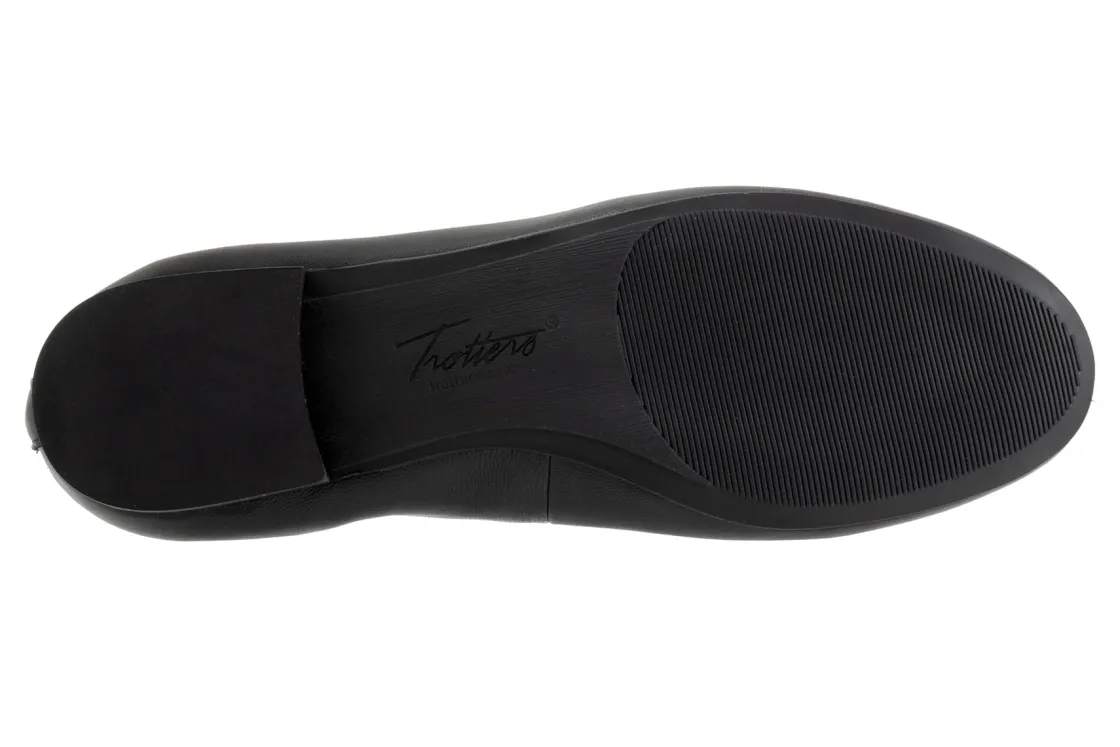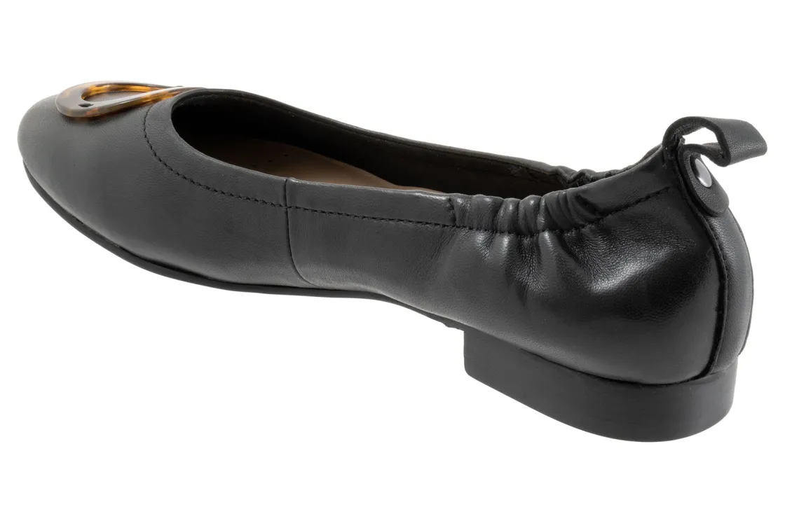 Trotters Gia Ornament are classic and comfortable women’s flats. These flat shoes have leather uppers, a cushioned PU footbed and a rubberized outsole. Back pull tab detailing, a soft microfiber lining, round ornament on toe and ¾ inch heel height will make these flats a wardrobe staple.