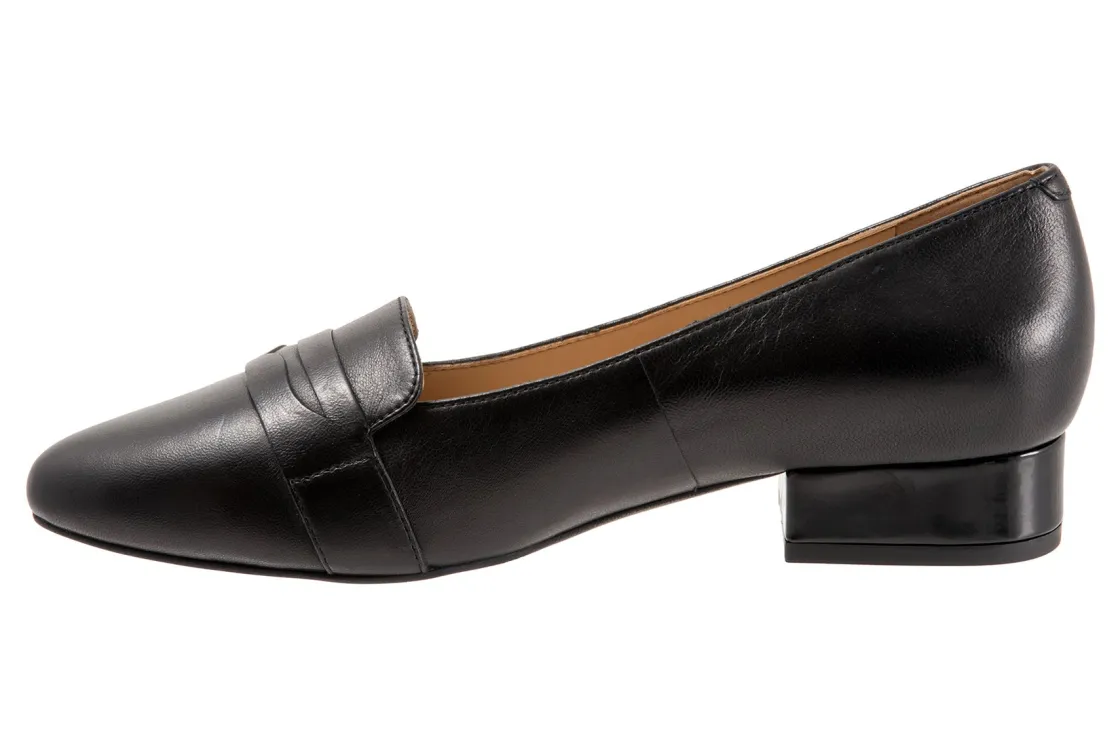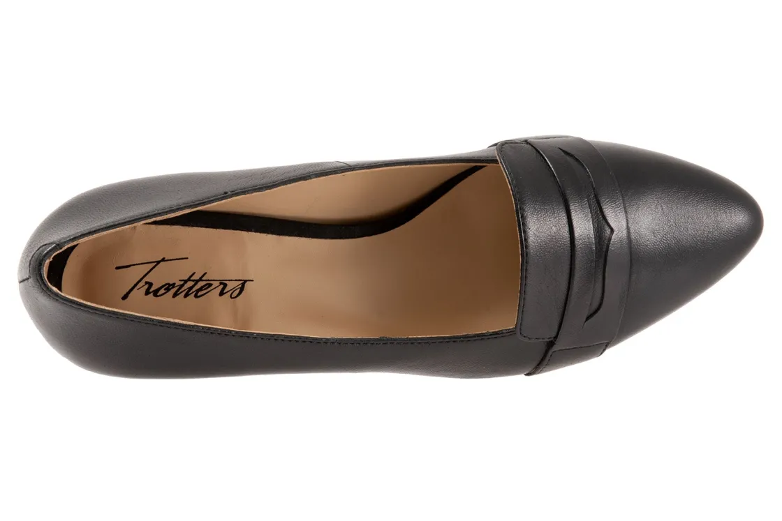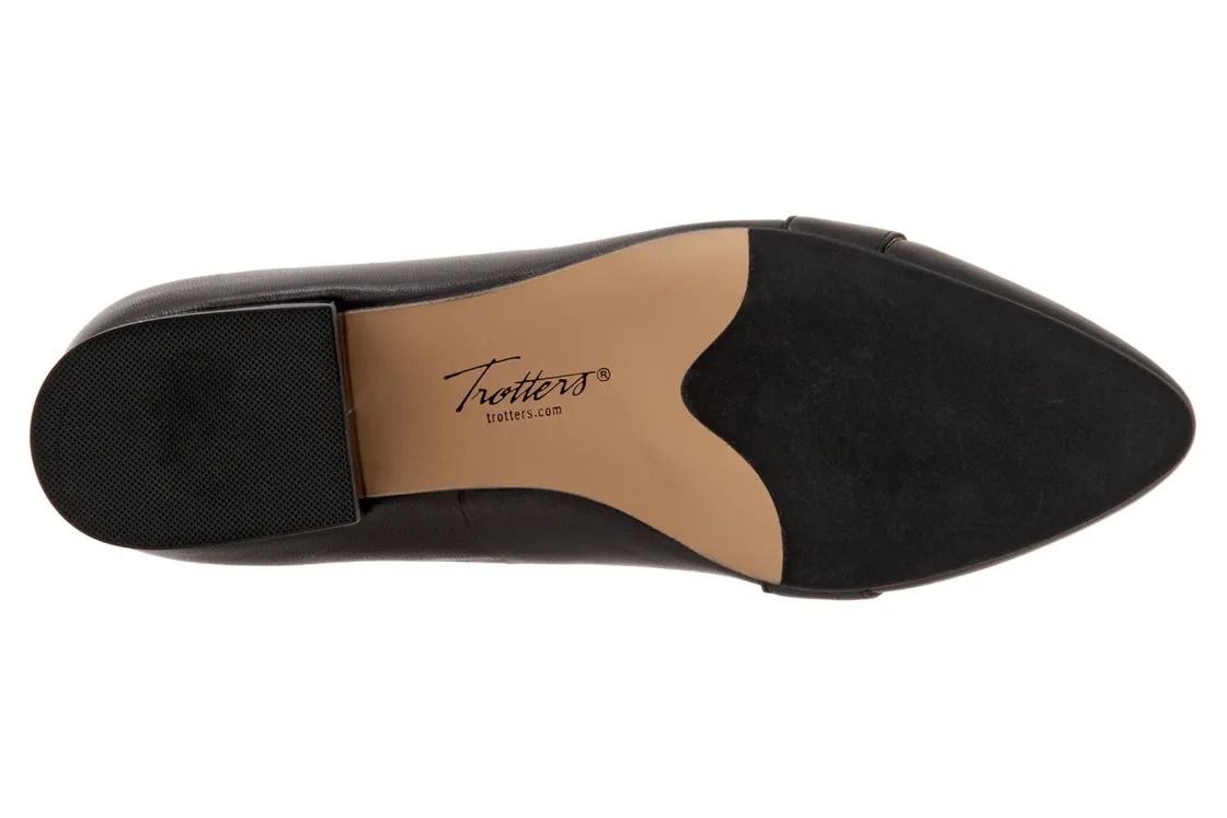 A painted edge keeper adds distinctive character to a pointy-toe pump atop a low, all-day wear heel perfected for the modern woman.
