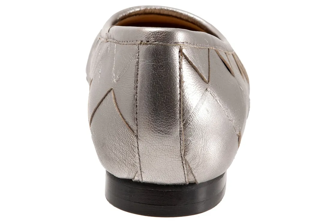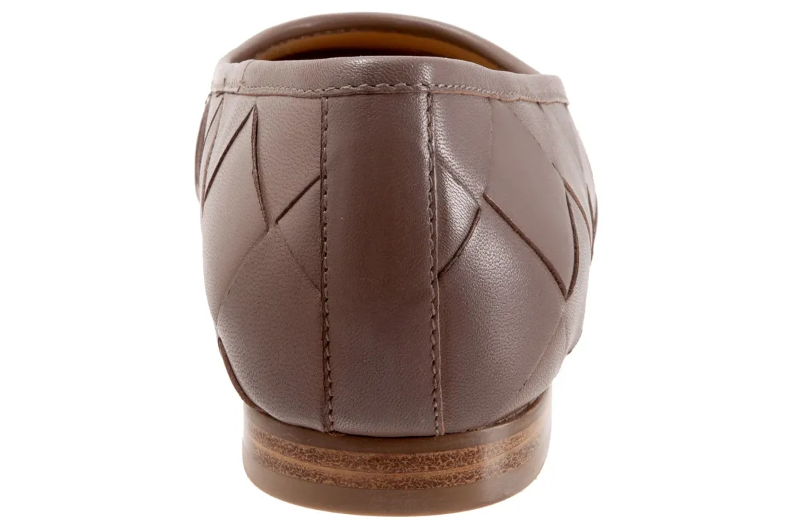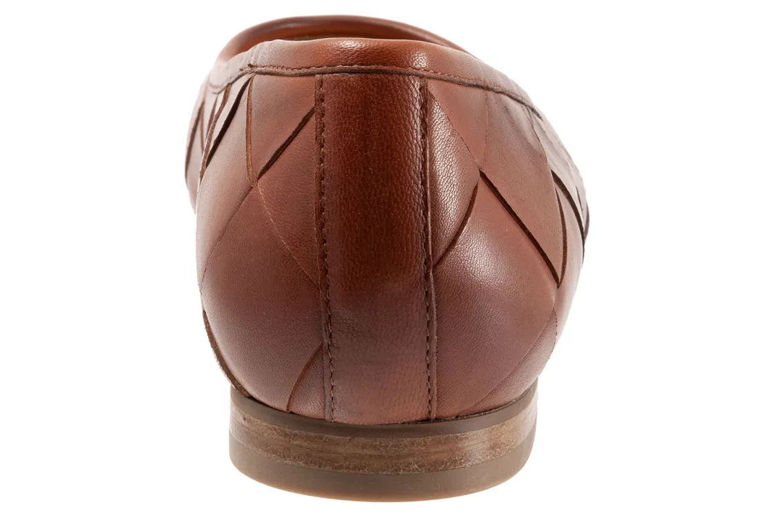 Trotters Hanny is a sleek and comfy ballet flat. Prominent features include oversized woven leather uppers, removable molded EVA footbed and rubber outsole. These flat shoes also have a square toe, odor-resistant sueded microfiber lining and low, ⅝ inch heel height.
