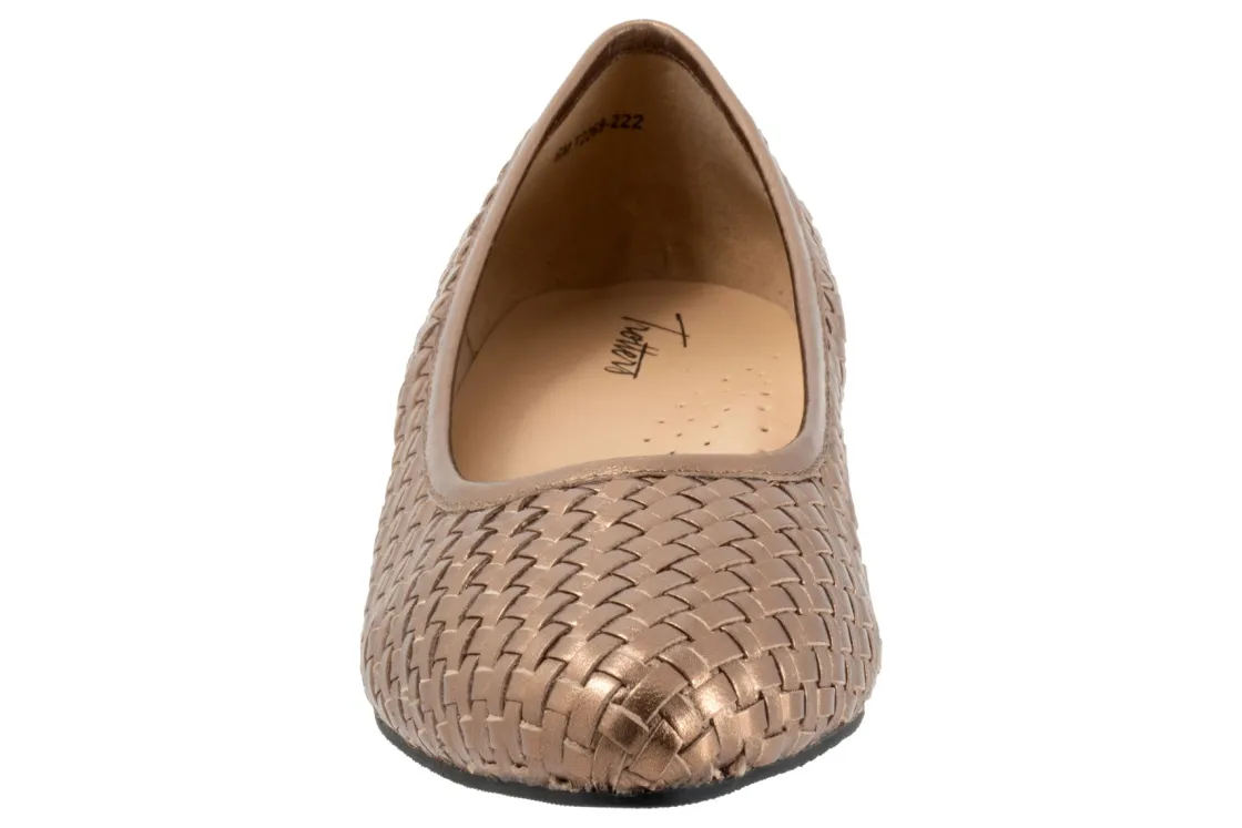 Trotters Jade are sophisticated and unique women’s pumps. These heels have woven leather uppers, plush PU footbed, soft rolled collar and rubberized outsole. A tricot fabric upper lining and a 1 ¼ inch mid-block heel outlines this fashionable pump.