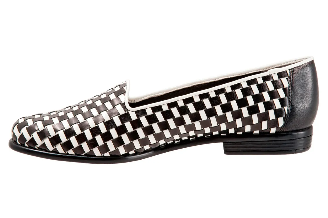 Trotters Liz is a sleek, woven loafer for special occasions. These trendy loafers have basket weave leather uppers, cushioned PU footbed and rubberized outsole. A soft cloth vamp lining, rounded toe and ⅝ inch heel height will make these chic dress shoes a new favorite.