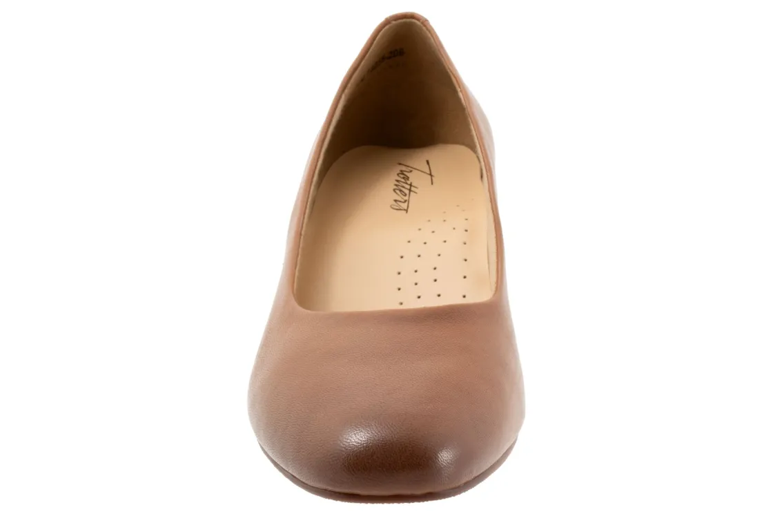 The Trotters Daria is a classic block heel pump that has a cushioned footbed with arch support.