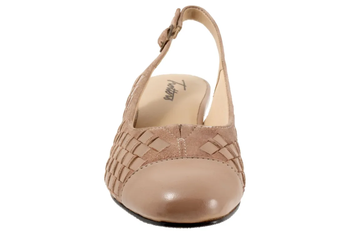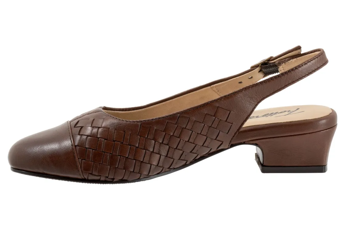 Trotters’ best-selling Dea gets the woven treatment which gives this slender sling-back pump a whole new character. Trotters Dea Woven features soft lining and a cushioned footbed.