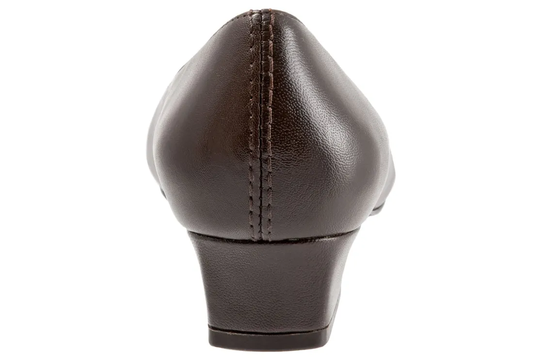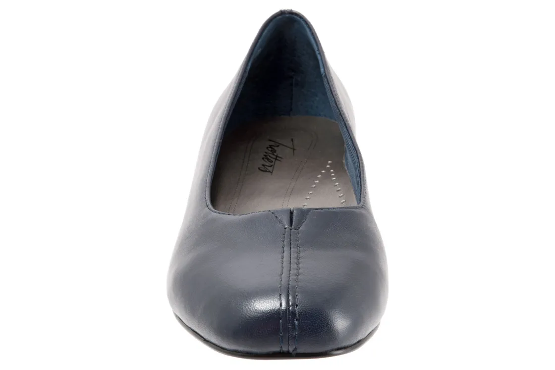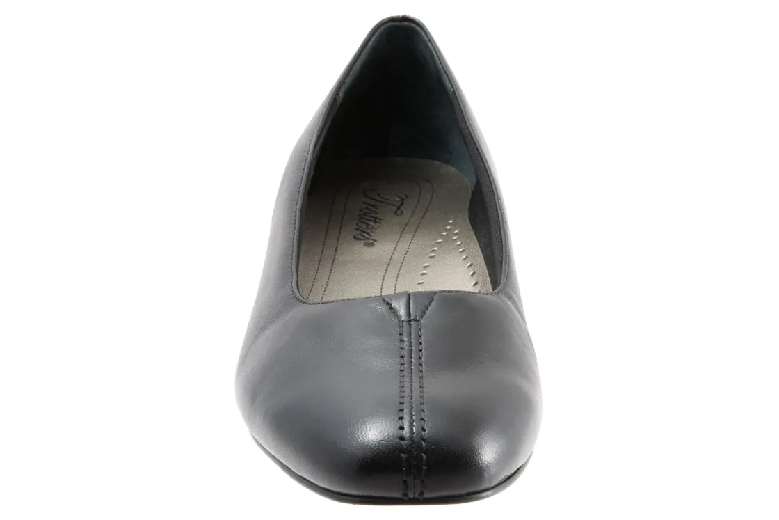 Trotters Doris is a classic and comfortable pump for any occasion. These chic heels have leather uppers, a cushioned PU footbed and synthetic rubber outsole. A tricot fabric upper lining, V-gore center vamp and a 1 ¼ inch wrapped heel height elevates these timeless pumps.