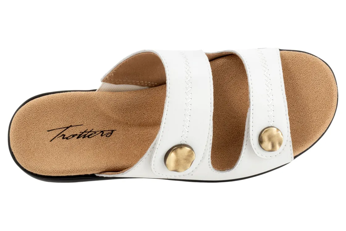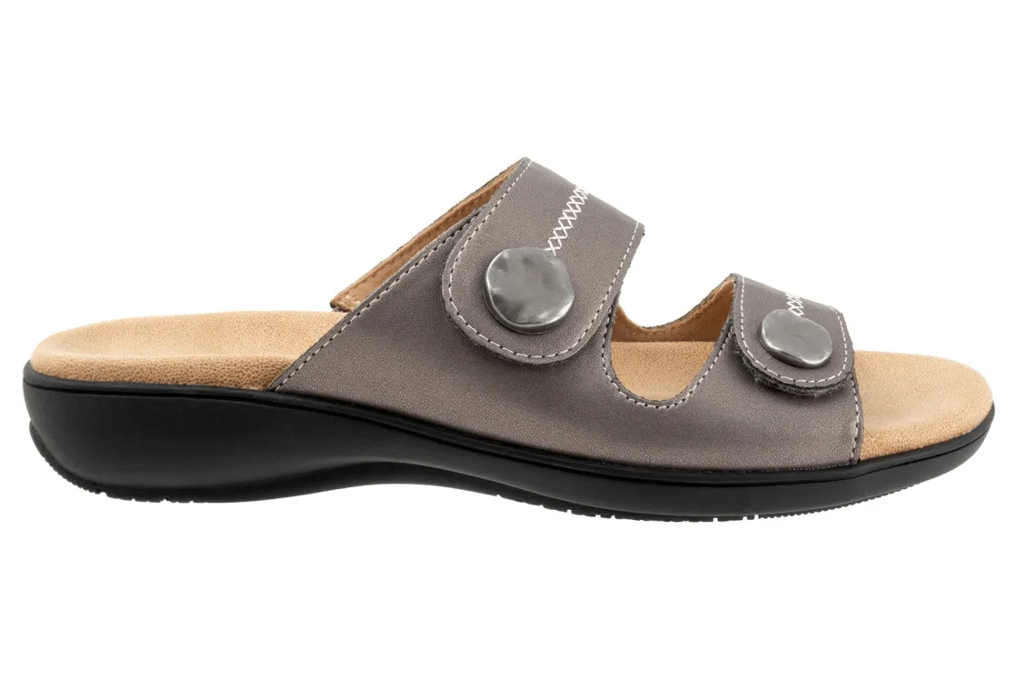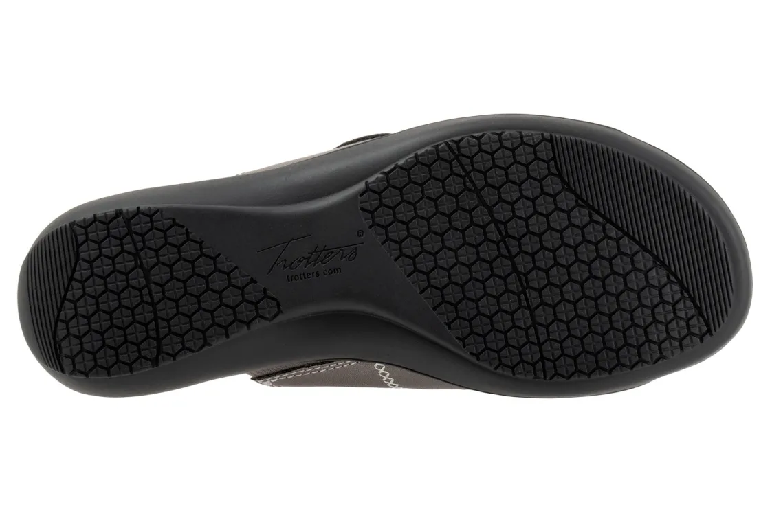 The Ruthie Stitch sandal has everything you love (fully adjustable straps, comfortable footbed) the Ruthie sandal now with a stitch pattern on the straps topped off with a large ornament.
