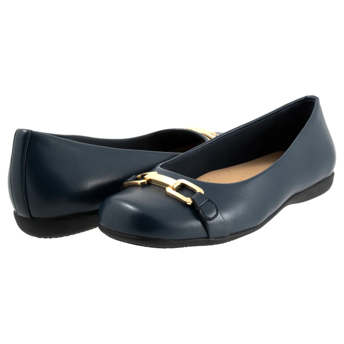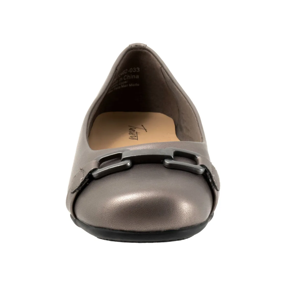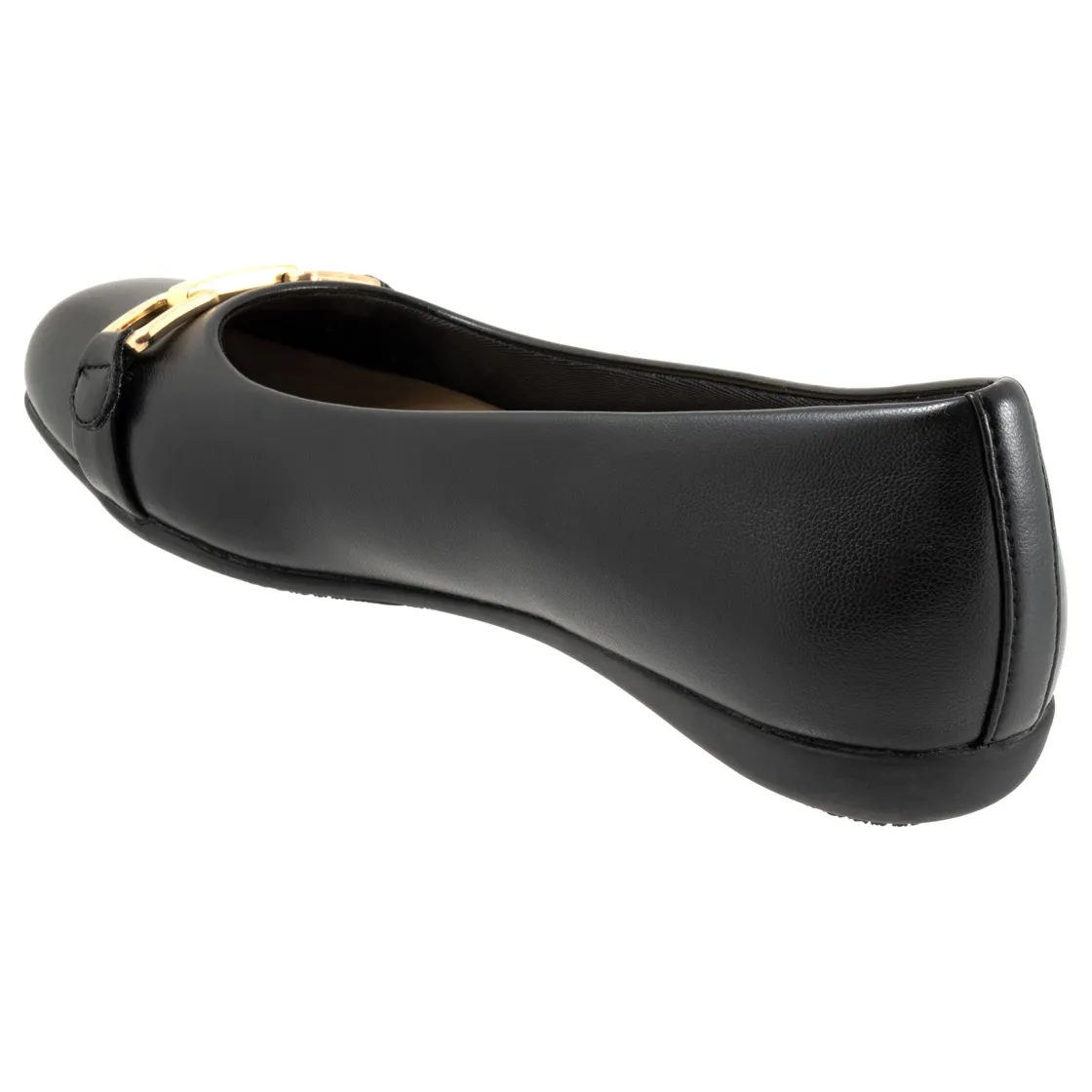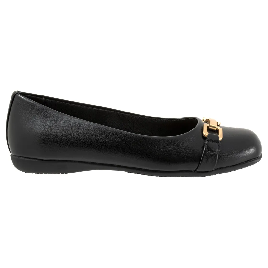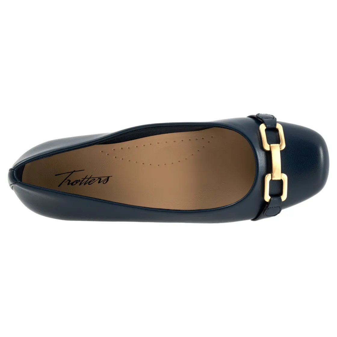 The Sadie flat adds a touch of class with a classy tailored buckle detail. The removable footbed is cushioned and has arch support and the long-wearing sole is based from a Trotters best seller.