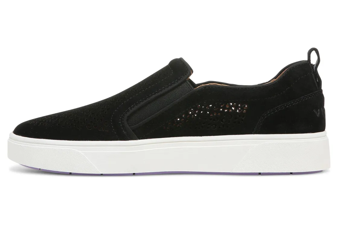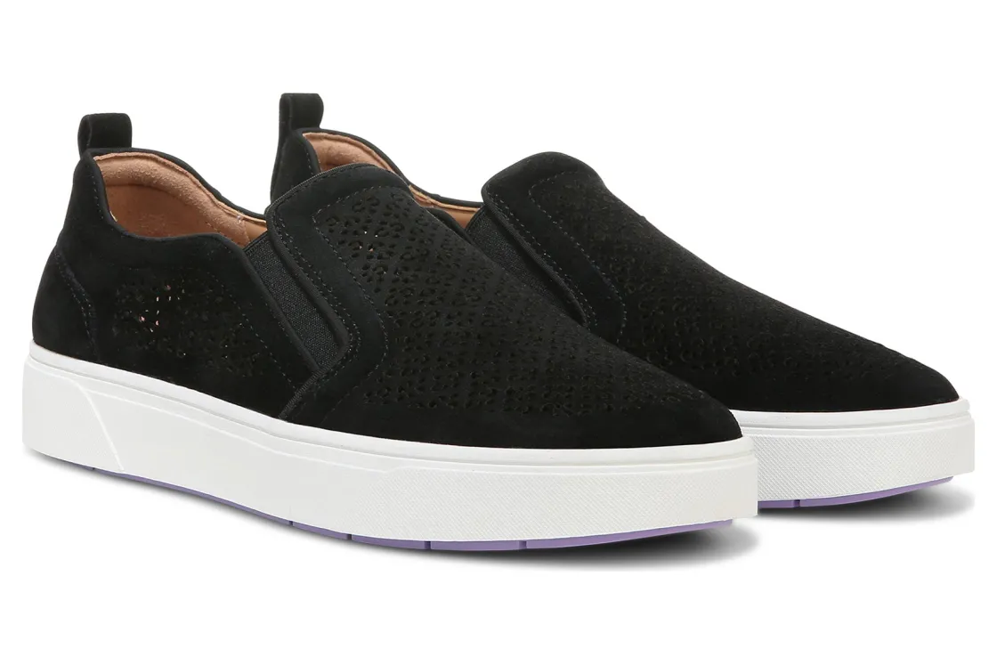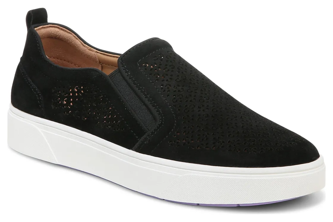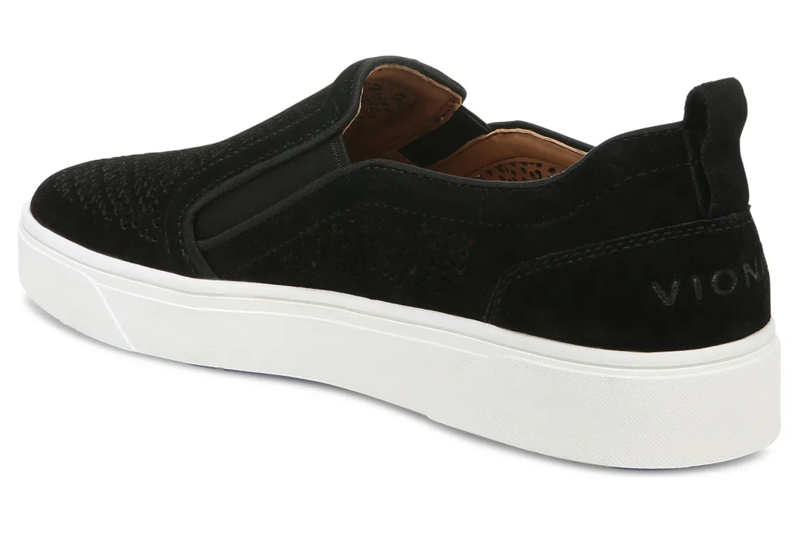 Vionic Kimmie Perf is a sophisticated take on the classic slip-on sneaker. These casual shoes have perforated suede uppers, removable mesh-covered EVA footbeds and durable rubber outsoles. A padded collar, stretch panels, heel pull tab and 1 ¼ inch heel height will make these sneakers a new favorite.This versatile sneaker has received an APMA Seal of Acceptance and provides arch support, stability and cushioning.
