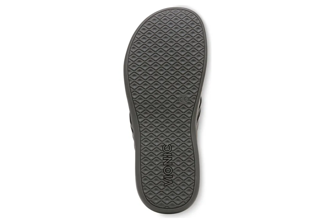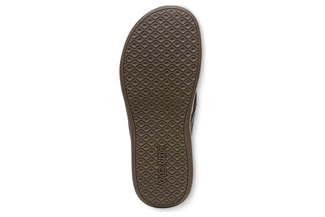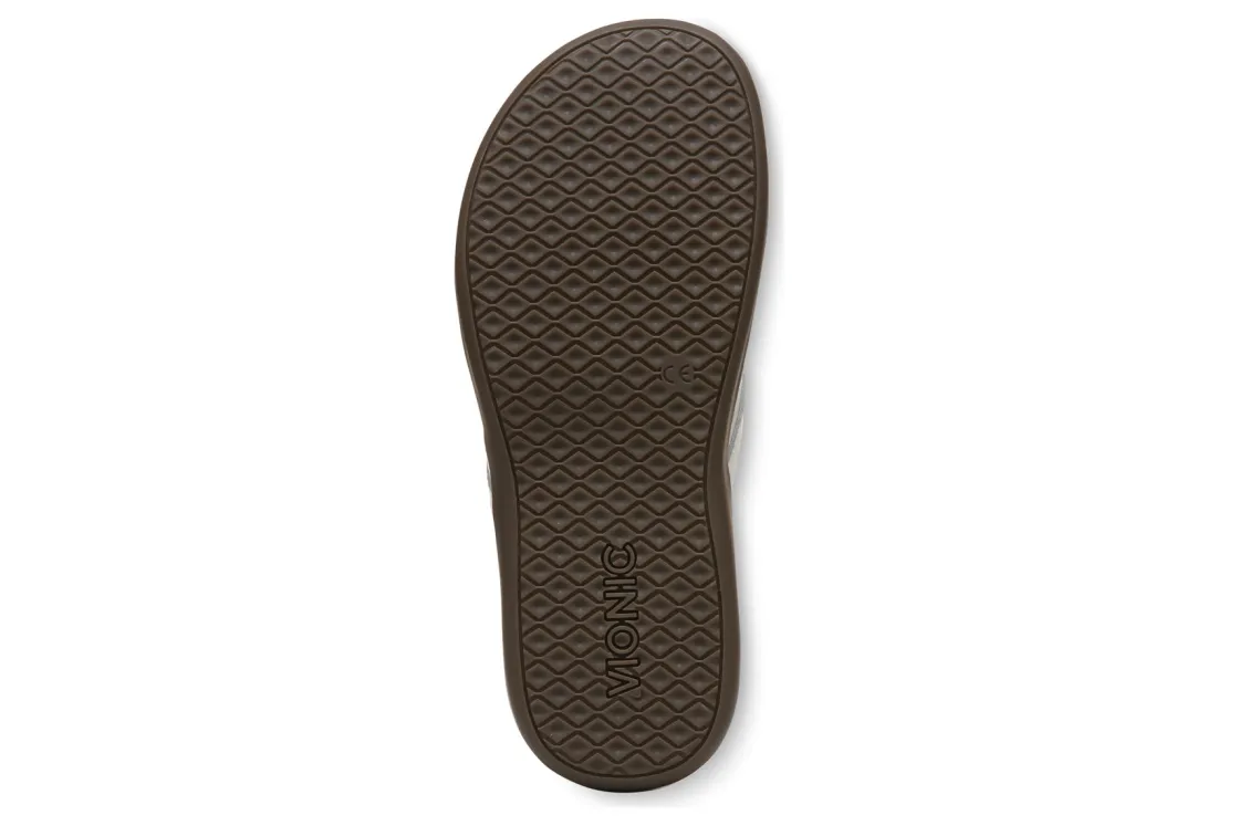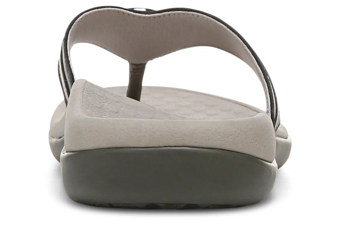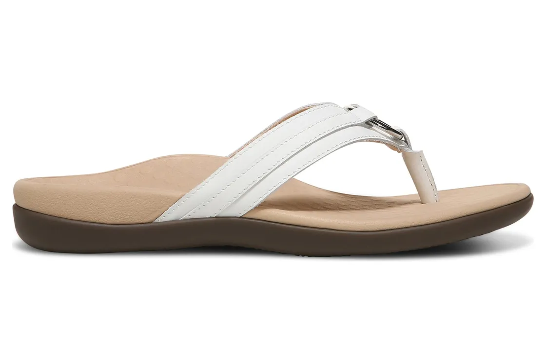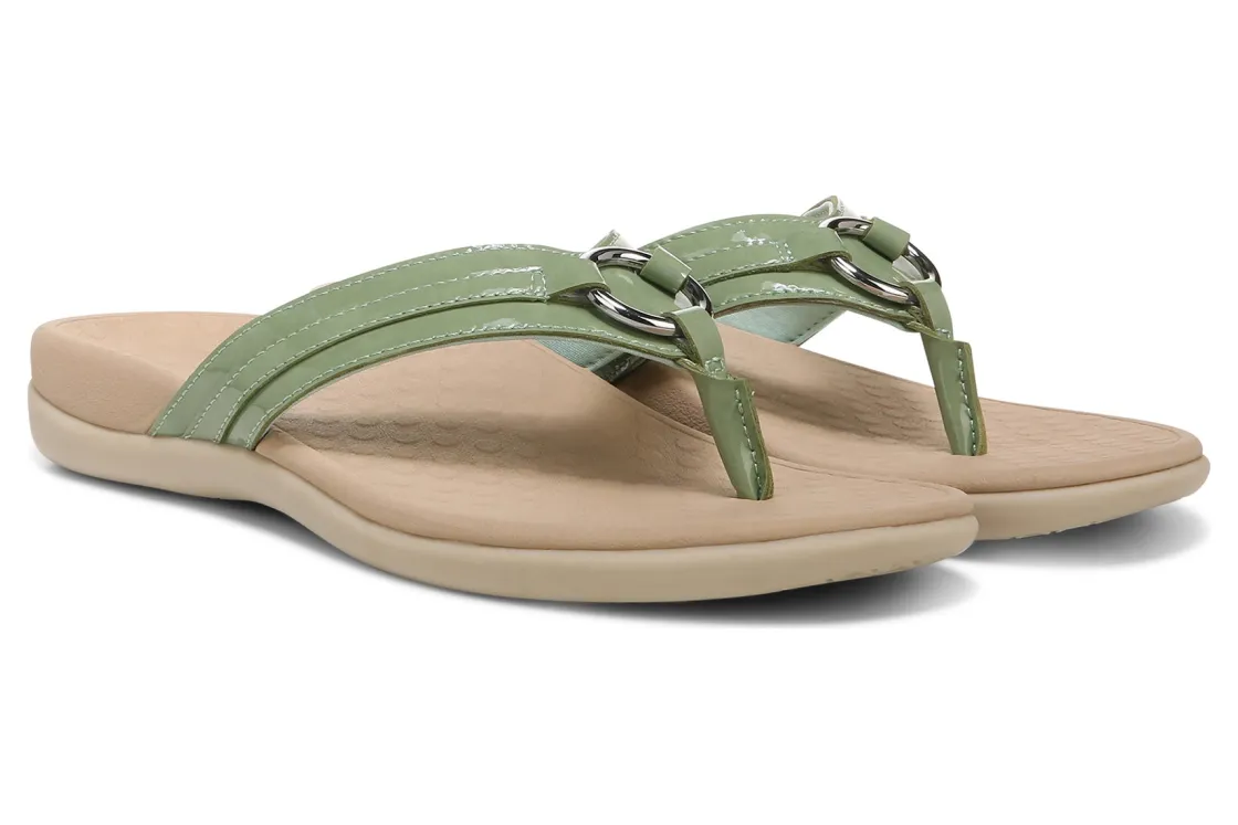 Vionic Aloe is a comfortable and dressy toe post sandal. These summer sandals have leather uppers, flexible EVA foam midsoles and durable rubber outsoles. A metallic-O-ring embellishment, foam-lined strap and ¾ inch heel height will make these sandals a warm weather favorite.A member of our Tide collection, Aloe helps to absorb shock and reduce stress on feet, ankles and knees. Vionic Technology assists in cushioning arches, helps to alleviate heel pain and plantar fasciitis and has received an APMA Seal of Acceptance.